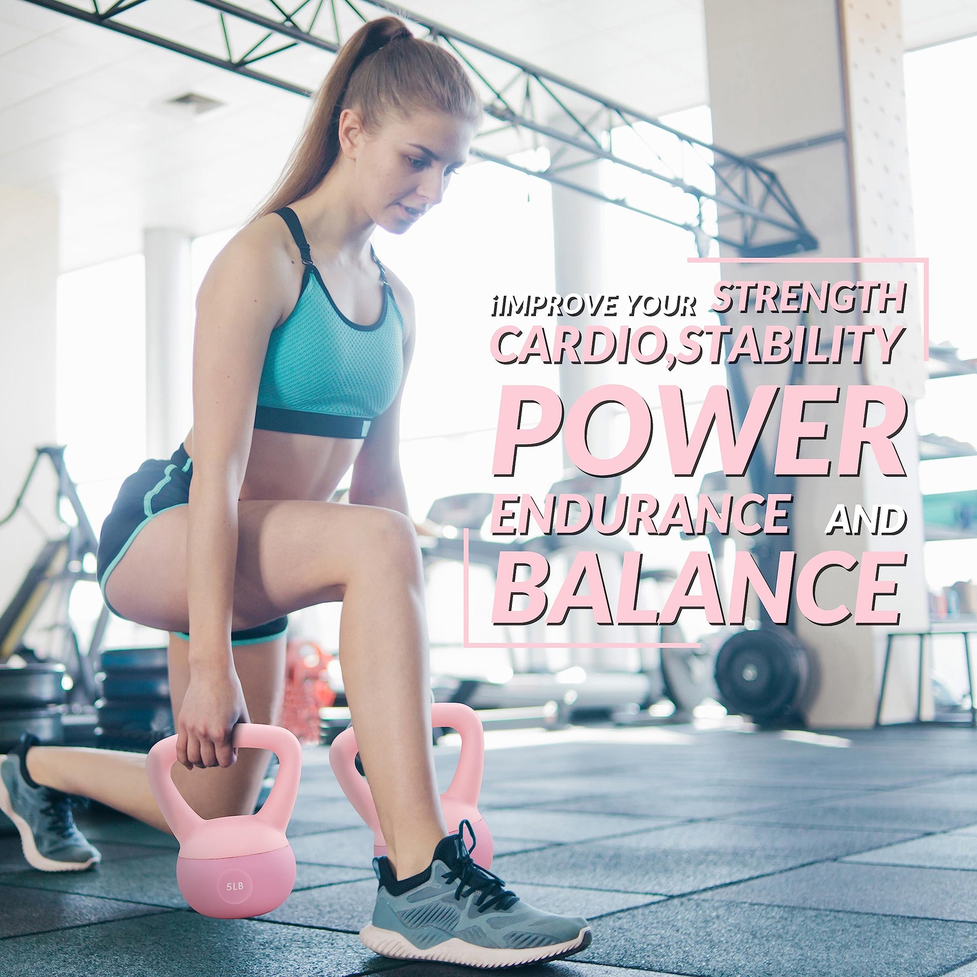Fitvids Soft Kettlebells - Sea and Iron Sand Filled Weights for Women and Men - Color Coded Soft Vinyl Kettlebells, 5-Pound