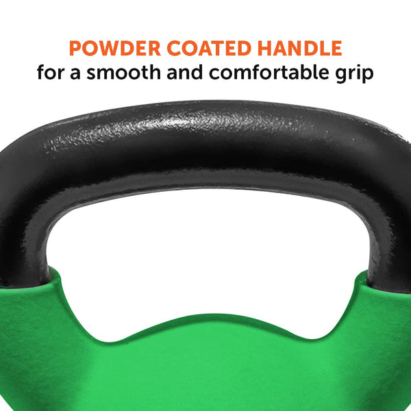 DETAILS: THIS IS MADE OUT OF SOLID IRON METAL AND COVERED WITH NEOPRENE COATING This Exercise Kettle Bell Weights is ideal for building muscle and getting fit. The kettle bell can be used in various exercises and used by everyone from beginners to athletes, and fitness classes in their training routine. Using a kettle-bell in a workout has proven to increase strength, endurance, agility and balance in addition challenging the individual further through all body movements in Different colors 5LB - PINK 7LB - LAVENDER 10LB - RED 12LB - PURPLE15LB - LIGHT BLUE18LB - YELLOW20LB -LIGHT GREEN25LB - LIGHT GREYNEOPRENE COATED: These kettle bells are covered with color coded Neoprene and marked on each end for easy weight identification, The bottom half of Our Neoprene Kettle bells Are Covered in Soft Durable Neoprene, to Protect the Floor if it Gets Dropped, and also gives it a real nice modern look Handles Designed to Fit Comfortably in Your hands, Perfect For Enhancing Your Daily Workout EXERCISES: kettle bell exercises build strength and endurance, particularly in the lower back, legs, and shoulders, and increase grip strength. The basic movements, such as the swing, snatch, and the clean and jerk, engage the entire body at once, and in a way that mimics real world activities. KETTLE BELL WORKOUTS: Kettlebell exercises work several muscles simultaneously and may be repeated continuously for several minutes or with short breaks. In one study, kettle bell enthusiasts performing a 20-minute snatch workout were measured to burn, on average, 13. 6 calories/minute aerobically and 6. 6 calories/minute anaerobically during the entire workout - ''equivalent to running a 6-minute mile pace''. Because of their high repetitions KETTLE-BELL PROGRESSION SHOULD START SLOWLY TO BUILD MUSCLE ENDURANCE, SUPPORT THE JOINTS AND PREVENT INJURY.