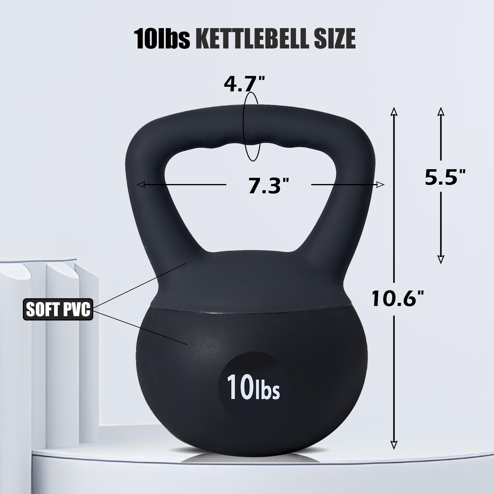 SogesPower Soft Kettlebells,Iron Sand Filled Weights Strength Training Kettlebells,Shock-Proof Weights and Wide-Grip Handle,Fitness Soft Kettlebells for Women Men Children,Home Gym Kettlebells,Black&Grey 10LBS