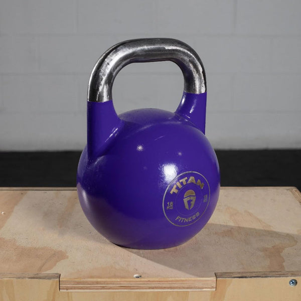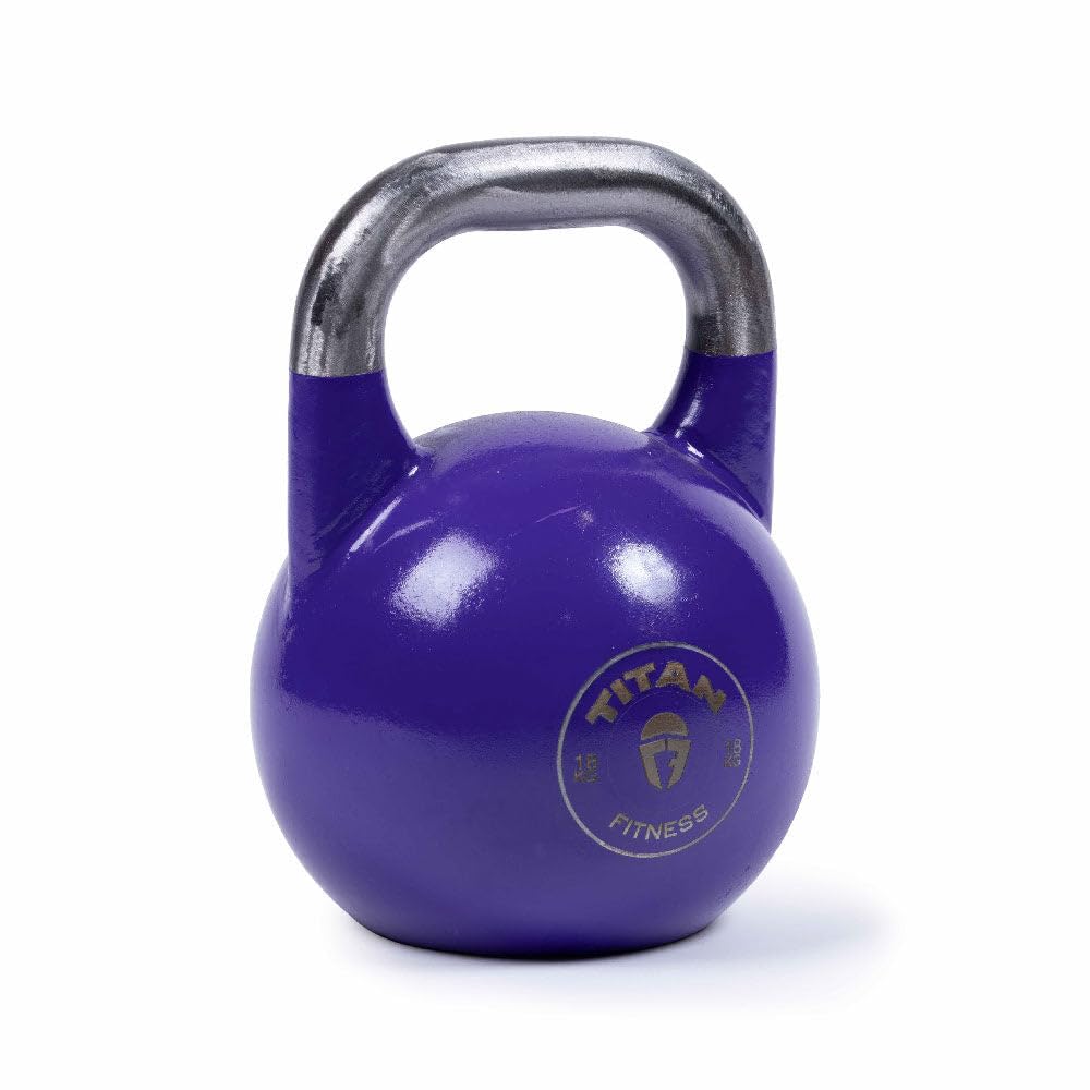 Elevate your workout with these versatile competition kettlebells. Spanning from 8 KG (18 LB) to 32 KG (70.5 LB) with laser-engraved KG weight indications, these robust steel casts allow you to adjust the weight to suit your workout routine - ideal for building overall strength, promoting calorie burn, and improving balance. Featuring a smooth wide-loop handle and a secure flat base, these kettlebells are perfect for movements like pushups that require stability. And they function as effective resistance and counterbalance for a diverse range of upper and lower-body exercises.FEATURES: - Perform swings, presses, squats, snatches, and more - Hollow core for better balance - Extra-wide handle for easy grip - Smooth finish for a great hand feel and grip while performing various exercises - Flat base for easy storage and exercises such as handstands - Laser-engraved weight indications in KG - Sold individually SPECIFICATIONS: - Overall Height: 290 mm / 11.4-in. - Overall Diameter: 210 mm / 8.3-in. - Handle Width: 190 mm / 7.48-in. - Handle Diameter: 35 mm - Finish: Purple - Material: Steel - Product Weight: 18 KG / 39 lb. - Quantity: 1