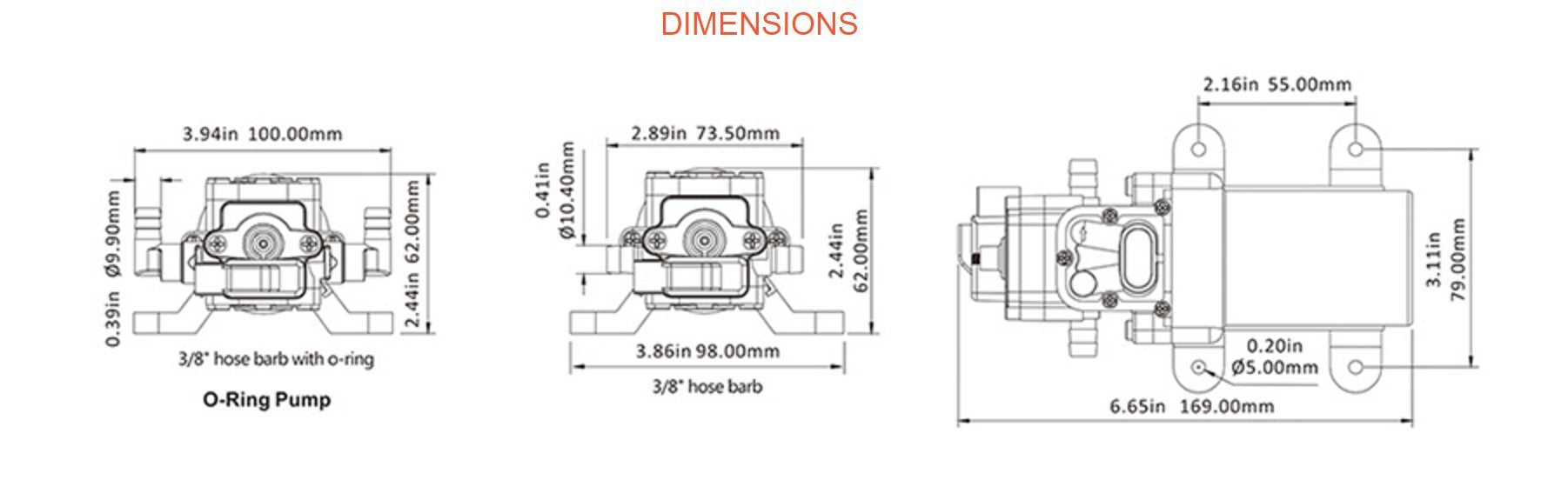 NEW 12V Self-Priming Water Pressure Pump 1.2 Gallons/Min (4.3 LPM) 35 PSI Product Details: This product is 100% brand new and comes in original color packing Powerful automatic pressure pump 1.2 Gallons Per Minute (4.3 LPM) capacity flow, and 35 PSI pressure Extremely efficient, very low current draw and offer high capacity output Self priming Smooth, silent operation Can run dry without damage Thermal overload and ignition protection Easy connecting system Low power draw Soft rubber mounts Professional grade pump - Ideal for marine, caravans/RV, and agriculture applications Built-in pressure switch, to automatically turn on and off as you turn your tap or nozzle on and off Beware of inferior non-genuine products on the market that claim to be just as good Specifications Voltage: 12V DC Flow capacity: 1.2 Gallons per minute (4.2 Litres per minute) Water pressure: 35 PSI Hose Outlets: Fixed 10mm (3/8'') diam. hose tails Twin core wire Current Draw: 1.7 Amp (max. 2.7 Amp) Dimensions: Length 170mm x Width 100mm x Height 67mm Approvals: CE Applications For marine, RV, agriculture and recreational applications Suits all size boats, caravans, mobile homes, etc. For sinks, taps, showers, or toilets Other applications where you have to transfer water