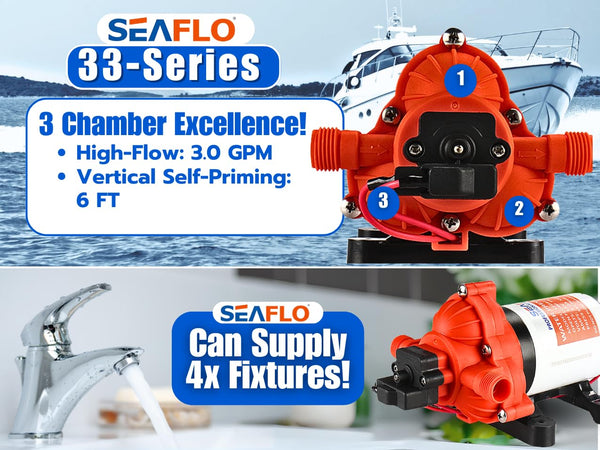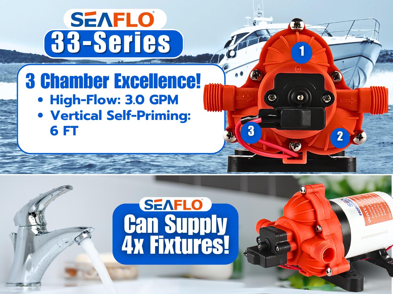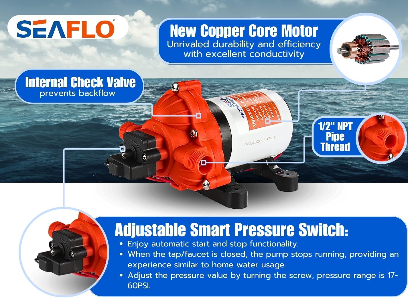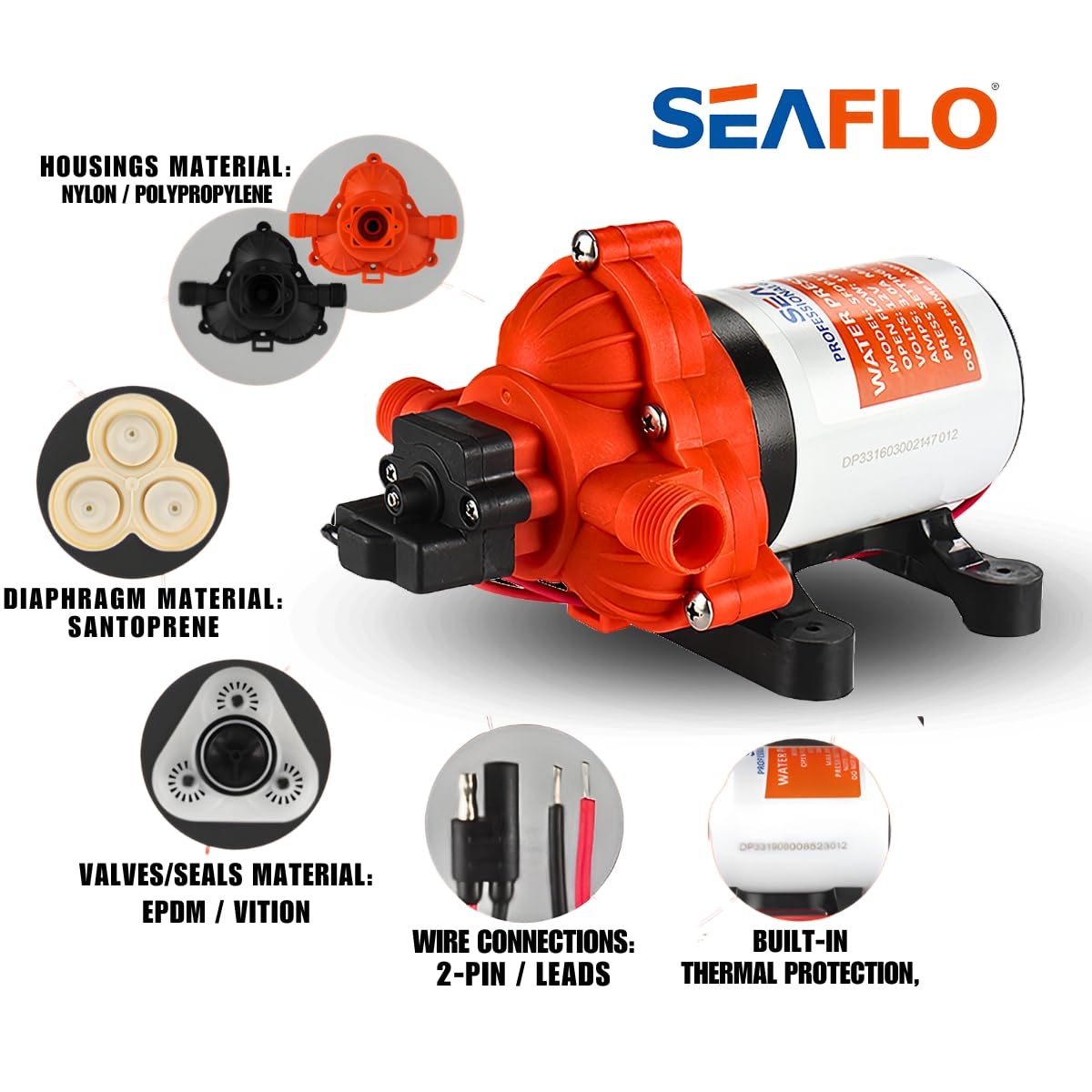 12V Self-Priming Water Pressure Pump 3.0 Gallons/Min, 45 PSI.