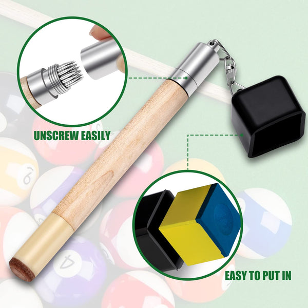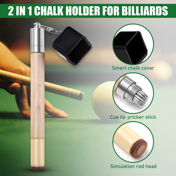 TOBWOLF Chalk Holder for Billiards, 2 in 1 Pool Cue Chalk Holder, Portable Wooden Pool Snooker Chalk Holder, Billiard Cue Tip Pricker, Non-Slip Billiard Cue Tip Tool Pool Table Accessory
