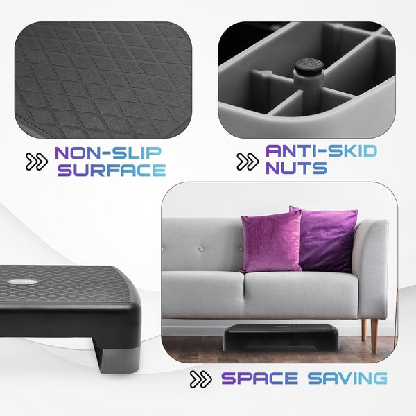 Maximize your workout with help from the Yes4All Aerobic Stepper Platform Enhance Cardiovascular Health: Step Aerobics is a fantastic way to get both your lungs and your heart to work at an increased rate. As a result, it can improve your workout performance. Help In Weight Loss & Gain Muscles: Science proves that 45 minutes of step aerobics can help you burn up to 450 calories. Its also great to develop buttocks, quadriceps, hamstrings, calve muscles, hip flexors (the group of muscles at the top of your leg). Increase Versatility: Stepping exercises are great but you can combine with weight or resistance training to get burning fat workouts. Great for Jump Step-Ups, Offset-Pushup Crossover, Squat-Pop Over, Decline Mountain Climber, & more.