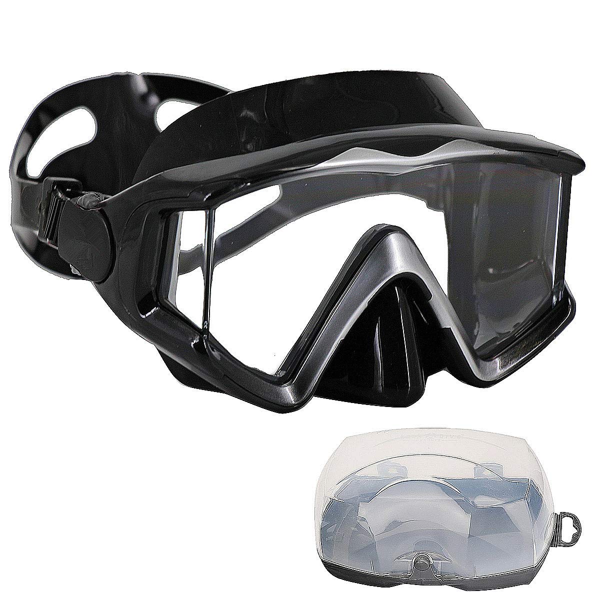 Snorkel mask: The better diving and swimming experience starts with a high-quality mask While diving or swimming, what could be more frustrating than wearing a mask that leaks or fogs a lot AQUA A DIVE mask USES food-grade silicone that provides A strong and comfortable seal Highlights: 1The flexible silicone belt is leakproof and comfortable and sealed: This soft, soft silicone fits all the contours of your face More customized fit, with a waterproof leak proof seal No leaks, no trouble Plus, silicone feels good, doesnt smell bad, and youll forget its even there 2One-Piece Lens: The one-piece lens allows for a smoother view forward and gives a more open, roomy feel to better enjoy the underwater world,as well as a better view of the surroundings to spot potential dangers 3Polycarbonate lens: Polycarbonate lenses have good fall resistance, avoiding the breakage caused by careless fall, and better protecting the eyes 4convenient Buckle for easy Adjustment With its simple to use design,the buckle adjusts easily for a customized fit Want to know the different ways you can use this product go swimming in the shallow waters right off the beach Dive off of a boat to explore reefs Swimming in a pool,our snorkel goggles are great for people of all experience levels, and that includes beginners What you will get 1 * Diving goggles 1 * scuba mask box