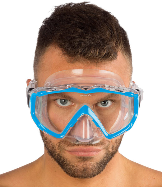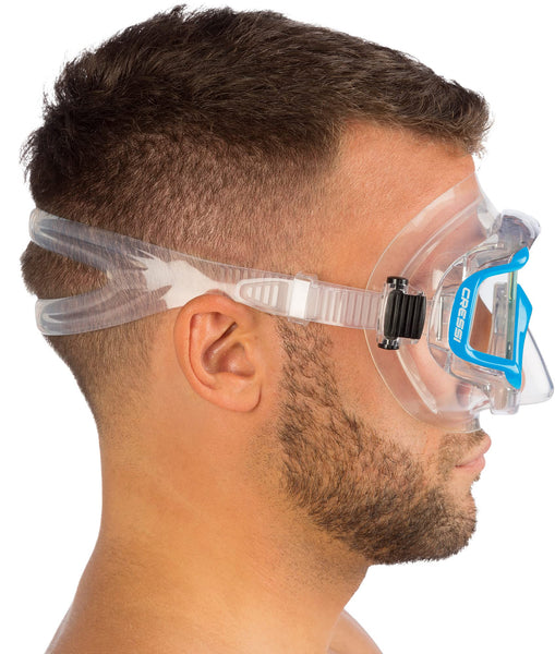 Cressi Panoramic Wide View Mask With Dry Snorkel Set, Clear Blue