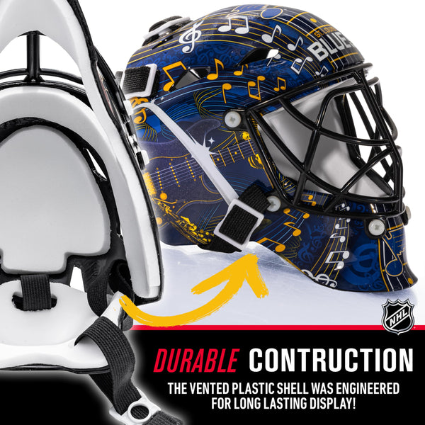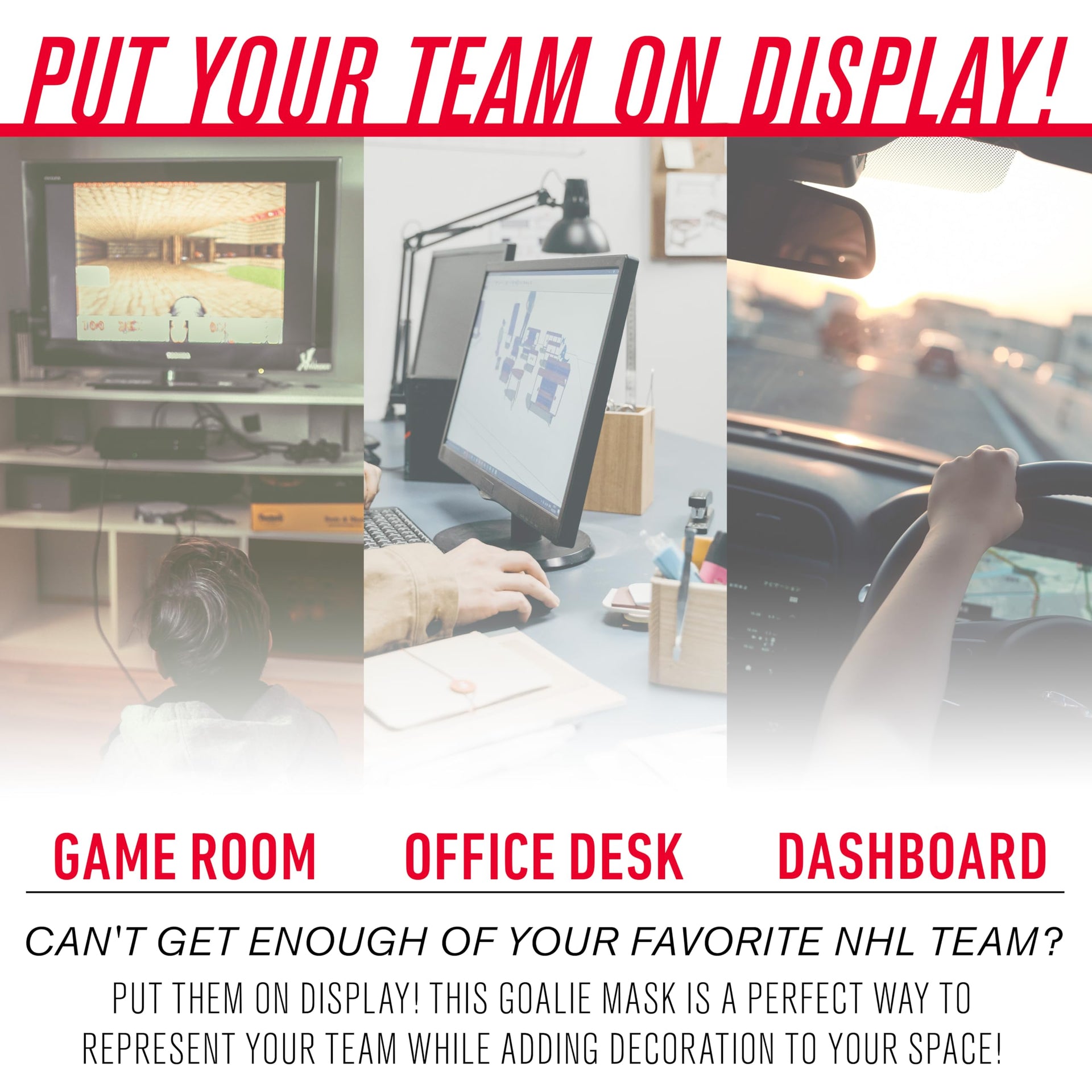 Can't find the right decor for your space? This Franklin Sports NHL mini hockey goalie mask is perfect for NHL fans looking to display their favorite team. With its authentic look and clear display case, this mask will look great on display in your home or office. It makes a great addition to any desk, shelf, or dashboard! It also makes for a great gift!