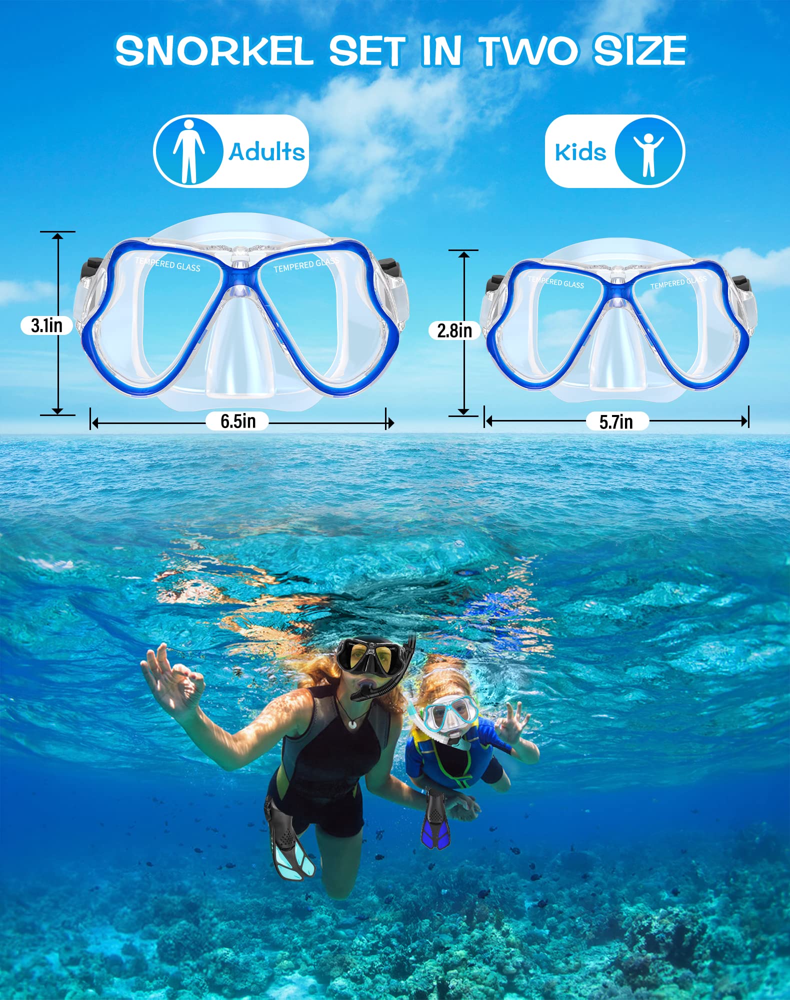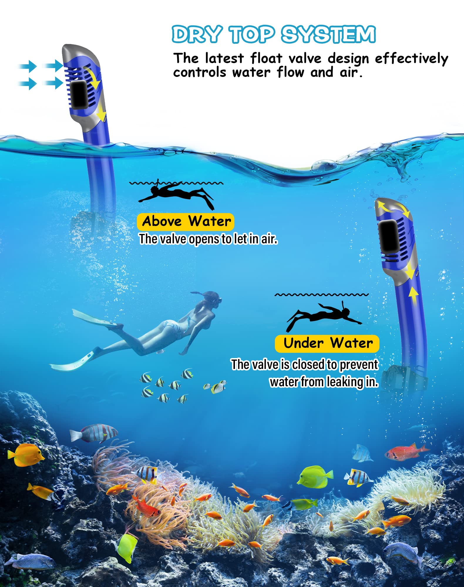 Greatever Dry Snorkel Set,Panoramic Wide View,Anti-Fog Scuba Diving Mask,Professional Snorkeling Gear For Kids