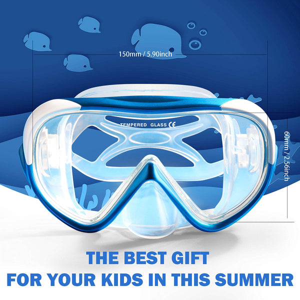 Kids Snorkel Swim Mask, Child Diving Mask Anti-Fog Swim Goggles With Nose Cover For Snorkeling Diving Swimming (Blue)