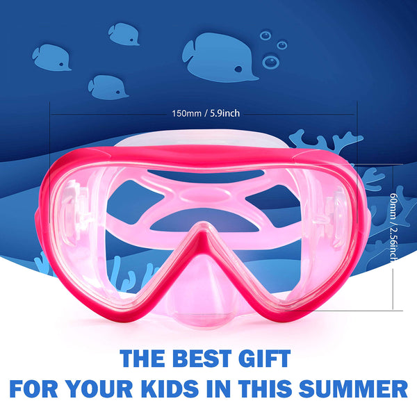 Kids Snorkel Swim Mask, Child Diving Mask Anti-Fog Swim Goggles With Nose Cover For Snorkeling Diving Swimming (Pink)