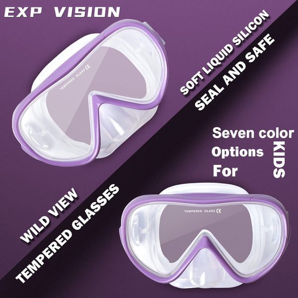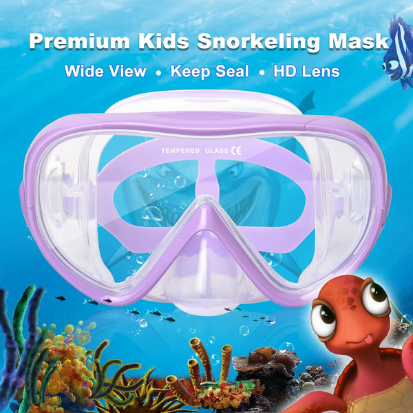 Kids Snorkel Swim Mask, Child Diving Mask Anti-Fog Swim Goggles With Nose Cover For Snorkeling Diving Swimming (Purple)