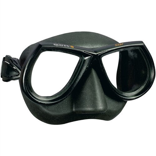 The Mares Star mask is a free diving mask with a low internal volume and a huge field of vision because the lenses are closer to your eyes. Soft Silicone skirt molds to your face to prevent leaks and the shape of the lenses gives you a natural view of the underwater world.