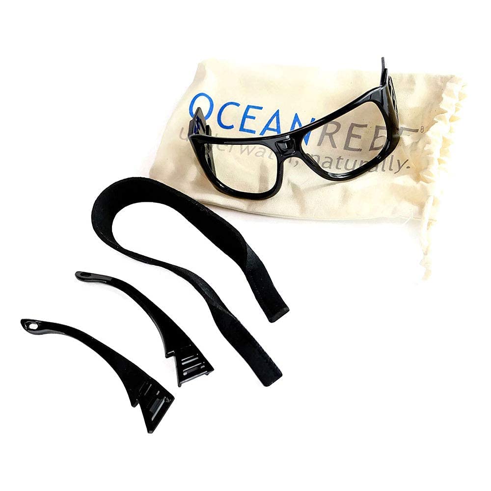 Set includes Frame, 2 removable legs - made from non-plastic, plant-derived material. Comes with organi cotton bag and neoprene floating strap to not loase the glasses once on board. A small step to reduce plastic use in the world! Compatible with all OCEAN REEF FFSM, except size XS, Compatible with all Scuba IDMs!