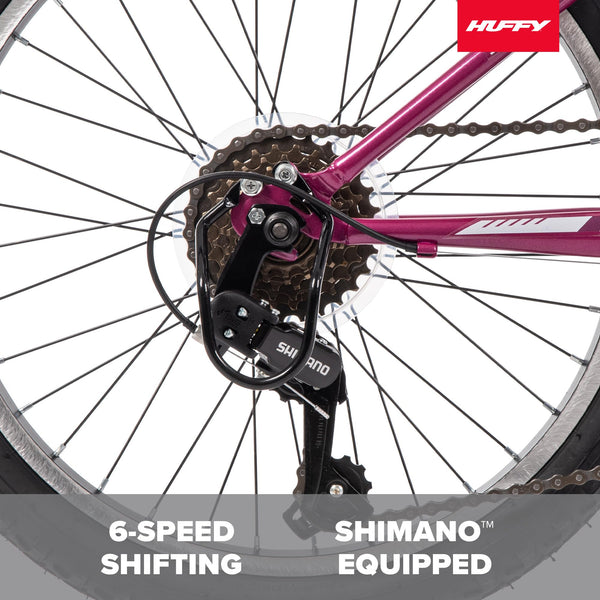 Huffy Stone Mountain Womens 20 Inch Mountain Bike, Orchid Gloss Frame, 6-Speed Shimano Twist Shifting, Front Suspension, Comfort