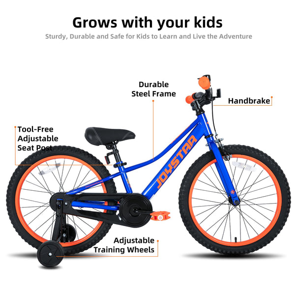 Design for Kids: 20 Inch bike with training wheels is suitable for 5-9 years (42-54 Inch) kids. This kids bicycle is perfect for riding to the park or riding on the sidewalk around the neighborhood. | Built To Last: Sturdy Hi-Ten steel frame and fork provide awesome impact resistance when riding over rocky and bumpy terrain, trailing edge tires provide good traction in wet and dry conditions, easily survive the multiple bumps of learning balance | Safety Riding: Rear Coaster brake and Front Caliper Brake (Handbrake) offer double safer, this kids bike will have more stopping power. The 2.4-Inch-wide tires for outstanding grip and stability in any weather conditions provide smooth riding. | Grow with Kids: The NEO Kid's Mountain Bike is great for first-time riders. Comes with detachable training wheels, a height-adjustable saddle, this kids bicycle can meet the needs of your child at different stages and grow with them. | Awesome Services: Easy to Assemble. This 20 inch kids bike comes with 85% assembled body and the basic assembly tools, timely customer service and also limited lifetime warranty. If any issues arise with our kids bikes, please contact us directly.