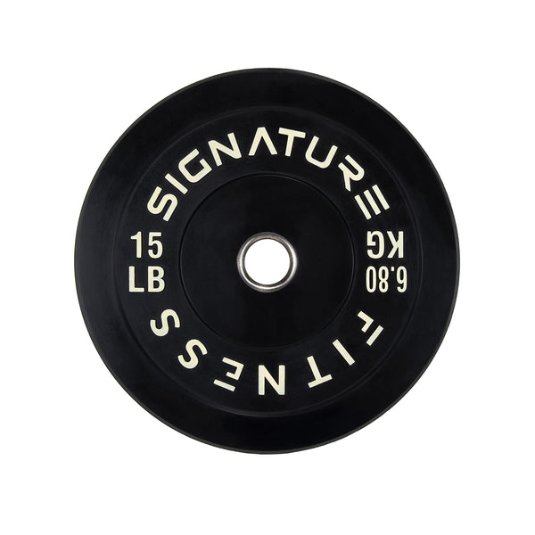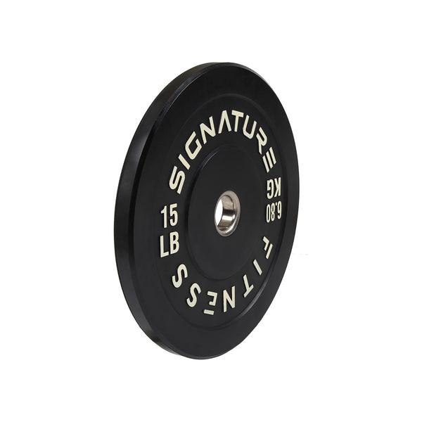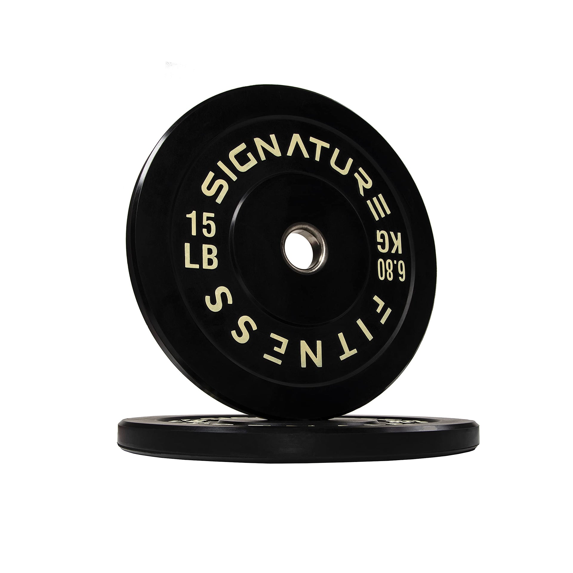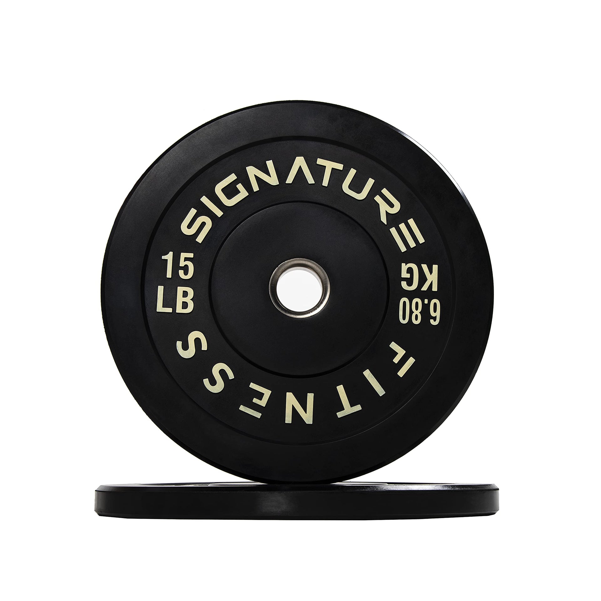 Signature Fitness 2 Olympic Bumper Plate Weight Plates with Steel Hub - 100% Virgin Rubber, Black