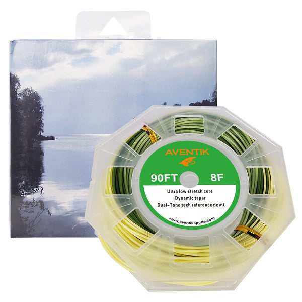 Aventik Fly Line Sure Cast Tri-Tone Dynamic Weight Forward Floating Line. The First 20 Feet Is One Color, Body Is Second Color And The Running Line Is Third Color. Two Tech Reference Points Enable Fly Fishing Anglers Not Only To Perform Easy And Fast Loading But To Also Help Accurately Determine Casting Distance. Agent X Coating For Dependable Float-Ability, Durability, And Extreme Slickness. Tri-Tone Combination A- The First 20 Is Moss Green Covering The Front Taper And The Front Body. Rear Body And Rear Taper Are In Orange And The Running Line Is Grey. Tri-Tone Combination B- The First 20 Is Light Green Covering The Front Taper And The Front Body. Rear Body And Rear Taper Are Dark Green And The Running Line Is Yellow. Ultra-Low Stretch Core, Built Through Pre-Treatment And Pre-Fix Of The Braided Line, Provides Maximum Sensitivity And Will Connect With More Fish Than Ever. Minimum Line Memory In All Weather Conditions. Revolutionary Dynamic Tapering Structure Varies On Different Line Weights. Physics And Science Have Been Perfectly Combined To Achieve The Best Distance And Accuracy In Fly Line Casting. Computer Controlled Design And Manufacturing Process. Easy Line Id System For Quick Identification Of Line Weight And Sinking Rate. Welded Loops For Fast Line Change. Self-Lubricated High-Tech Agent X Coating For Dependable Float-Ability, Durability, And Extreme Slickness. Excellent In Both Freshwater And Salt Water. Ideal For Cold And Medium Temperatures.