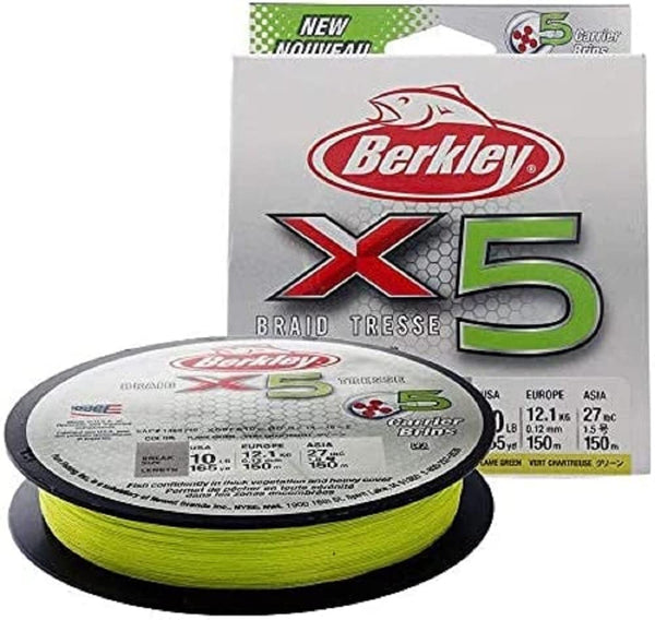 From Avid Anglers To Weekend Warriors, We All Share The Same Goal - Catch Everything. From Your Rod And Lure Right Down To Your Line, Use The Right Gear To Get The Job Done And Maximize Every Day Out On The Water. Berkley X5 Braid Is A Conventional Braid Made From 100% Pe Fibers. An Upgrade On The Average 4-Carrier Braids, The Berkley X5 Adds Another Strand To Take Durability And Abrasion Resistance To A Whole New Level. Fish Confidently In Thick Vegetation And Heavy Cover And Reel In The Big One With Fishing Braid That Is Favored By The Champion, Jordan Lee.At Berkley, Our Process Gives Anglers The Tools And Confidence To Catch More Fish. Failing To Catch Fish Is What Motivates Us To Keep Fishing, Keep Studying, And Keep Figuring Out Ways To Make All Our Products The Best On The Market. Because Of This Commitment We Can Confidently Say - We'Ve Done The Science. Now You Catch The Fish.