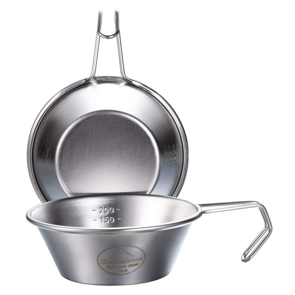 Dimensions(Each Pc):F4.7X6.5X1.8(H) / F12X16.5X4.5(H)Cm;Weight:3Oz / 75G;Capacity (Full):310 Ml Material:304 Stainless Steel ?Compact & Easy To Hold?By Stacking Sierra Cups On Top Of Each Other, They Can Be Stored And Save Space. It Has A Handle, Which Could Be Hooked On Camp Rack And Easy To Hold. ?Sturdy & Heat-Resisting?Made By 304 Stainless Steel, Very Sturdy. You Can Put It On Fire Directly For Cooking. Very Convenient For Your Camping, Backpacking, Hunting And Other Outdoor Occasions. Package Include:2 Pcs Of Sierra Cup.?Used As A Measuring Cup/Coffee Cup?As It Has A Scale On Inside, You Do Not Need Another Measuring Cup For Your Instant Food. You Can Also Use It As A Coffee Cup, Soup Bowl Etc... As You Need.
