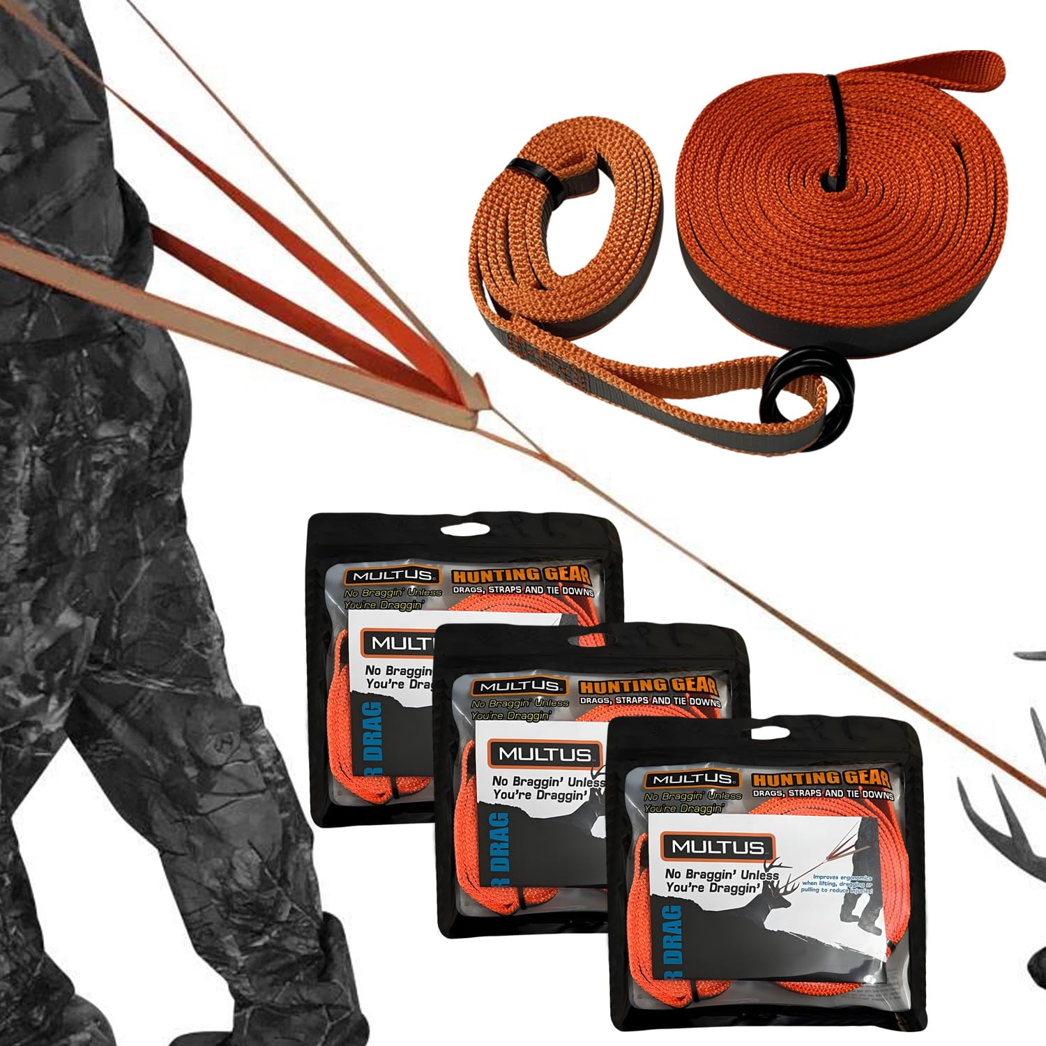 Move Or Drag Deer Hands Free With The Multus Harness Deer Drag. The Smaller Dual Loop Strap Is Used To Attach To Any Part Of The Deer As An Extender Strap That Will Allow A Hunter To Drag In An Upright Position For Greater Control, Improved Pulling Power And Safety. The Large Loop Strap Is Used As A Shoulder Harness For Hands Free Dragging And Reduces Fatigue And Injuries. The Durable Polyester Dual Loop Strap Simply Cinches Down To Attach To Any Part Of The Deer. Ideal For Dragging Trees, Heavy Awkward Hunting Equipment, And Dragging Deer. Move Deer Hands Free And Standing Upright With The Harness Deer Dragupright Lifting Position Provides Greater Control And Improved Pulling Power While Reducing Fatigue And Injuriessmall Dual Loop Strap Cinches To Any Part Of The Deer And Then Use Larger Loop Webbing To Create A Shoulder Harness For Hands Free Dragging.Ideal For Dragging Trees, Heavy Equipment, And Harvested Game With A 400 Lb Dragging Load Capacity. Includes: 3 - 4 Foot Reflective Orange Dual Loop Straps | 3 - 6.5 Foot Reflective Orange Harness Loop Straps