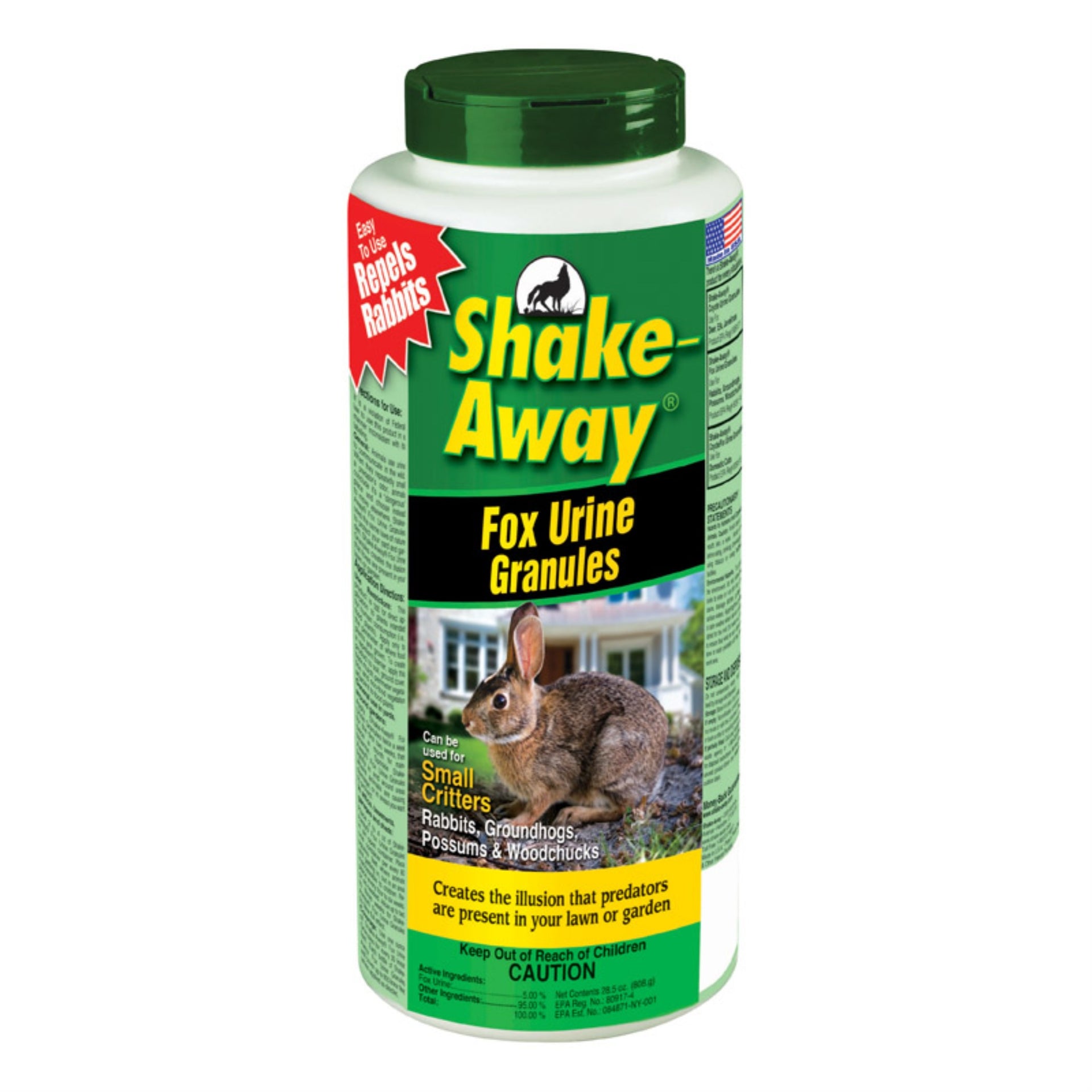 - Q: What is Shake Away Fox Urine Granules used for? A: Shake Away Fox Urine Granules are used to deter pests such as cottontail rabbits, groundhogs, and possums by leveraging their natural instinct to avoid predators.