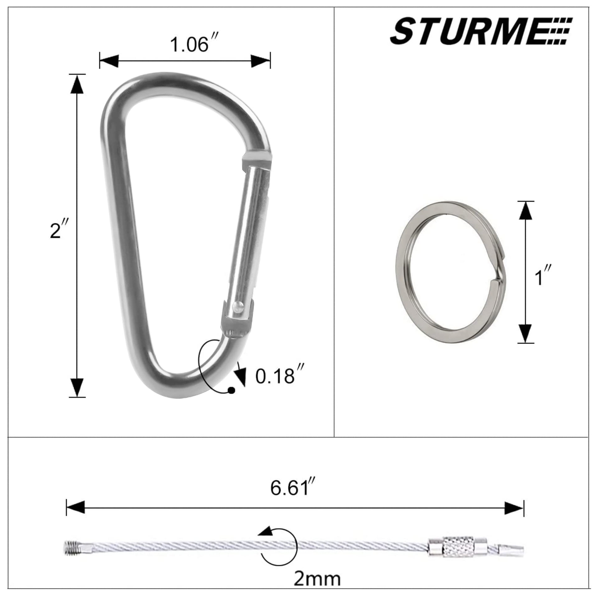 Sturme 2'' Aluminum D Ring Carabiners Clip D Shape Spring Loaded Gate Small Keychain Carabiner Clip Set For Outdoor Camping Mini