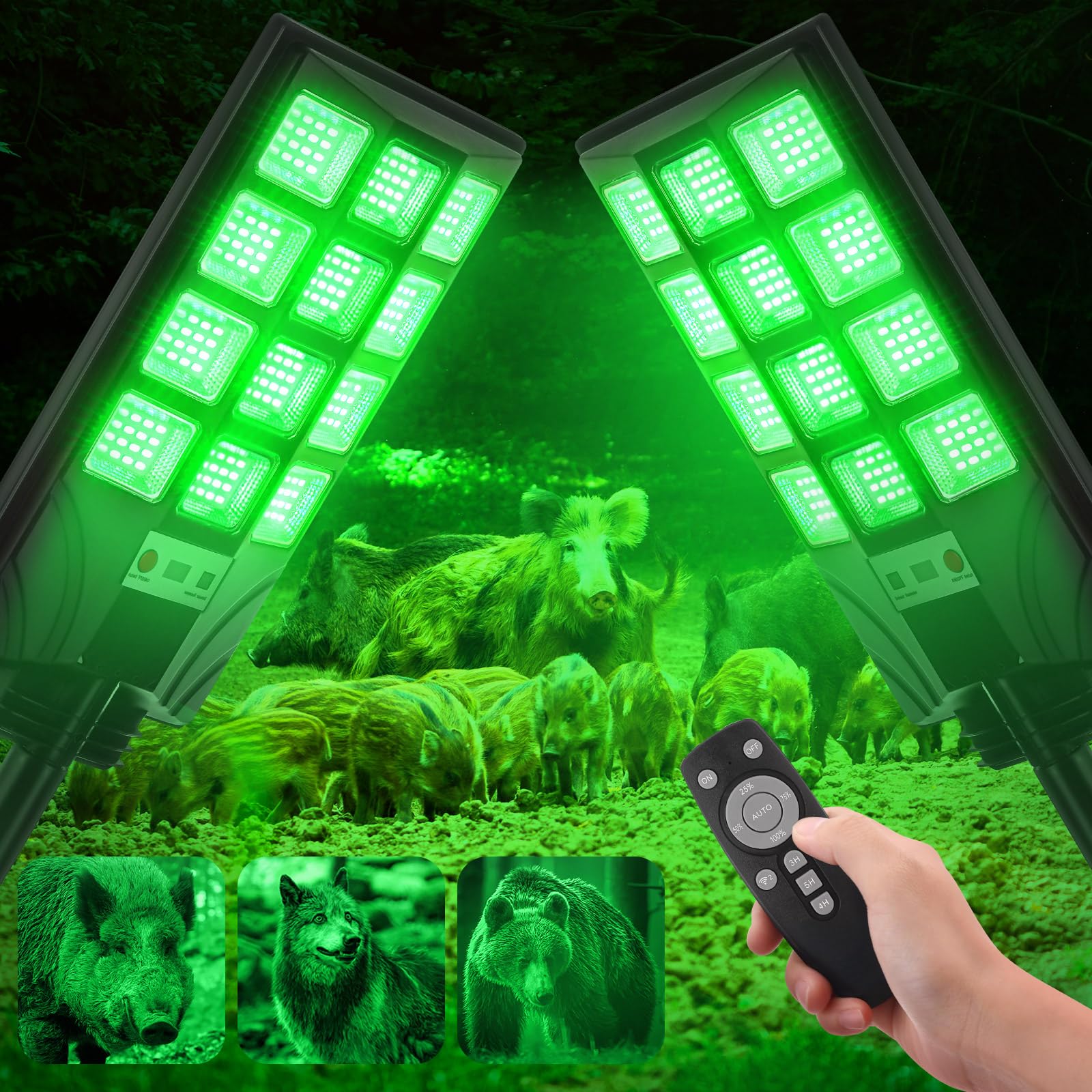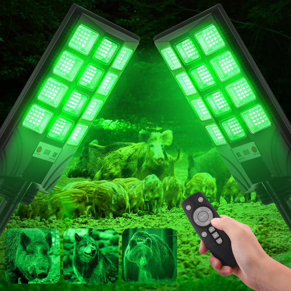 Features: Use Our Motion Sensor Hog Feeder Light To Get A Crystal-Clear View Of Your Target. Solar Power Green Hog Lights, Saving Living Expenses And Electricity. The Remote Control Of The Green Night Hunting Light Can Adjust Lights, Radar Modes, And Set Timers Motion Radar Sensors To Detect Hogs, But Hogs Or Coons Are Not Easy To Perceive Green Light. Specifications: Material: Quality Metal And Plastic Color: Green Size: 13*7*13.8 Inches Package Includes: 2 Pack Night Hunting Light Notes: Small Parts Included, Please Keep Them Away From Little Kids To Avoid Swallowing Risk. Manual Measurement, Please Allow Slight Errors On Size. The Color May Exist A Slight Difference Due To Different Screen Displays