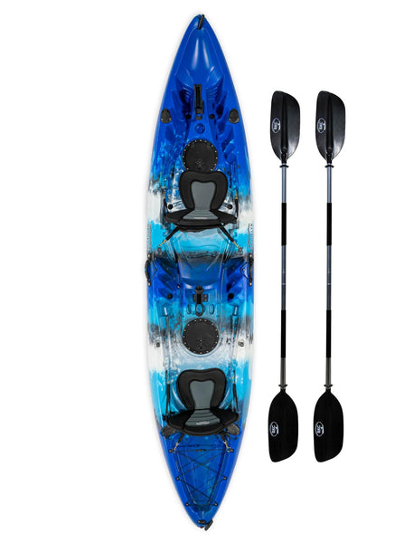 Bkc Tk219 12.2' Tandem Fishing Kayak W/Soft Padded Seats, Paddles,6 Rod Holders Included 2-3 Person Angler Kayak (Blue)