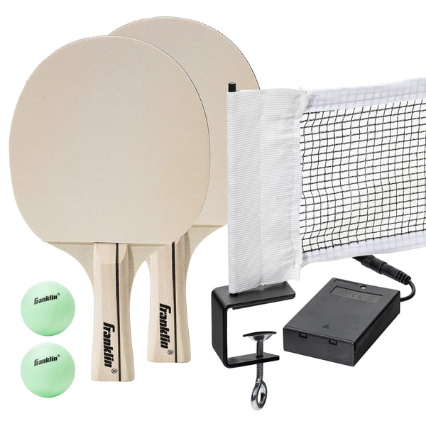 - Q: What is included in the Franklin Sports LED Table Tennis Net set? A: The set includes an LED table tennis net, glowing paddles, and glowing table tennis balls.