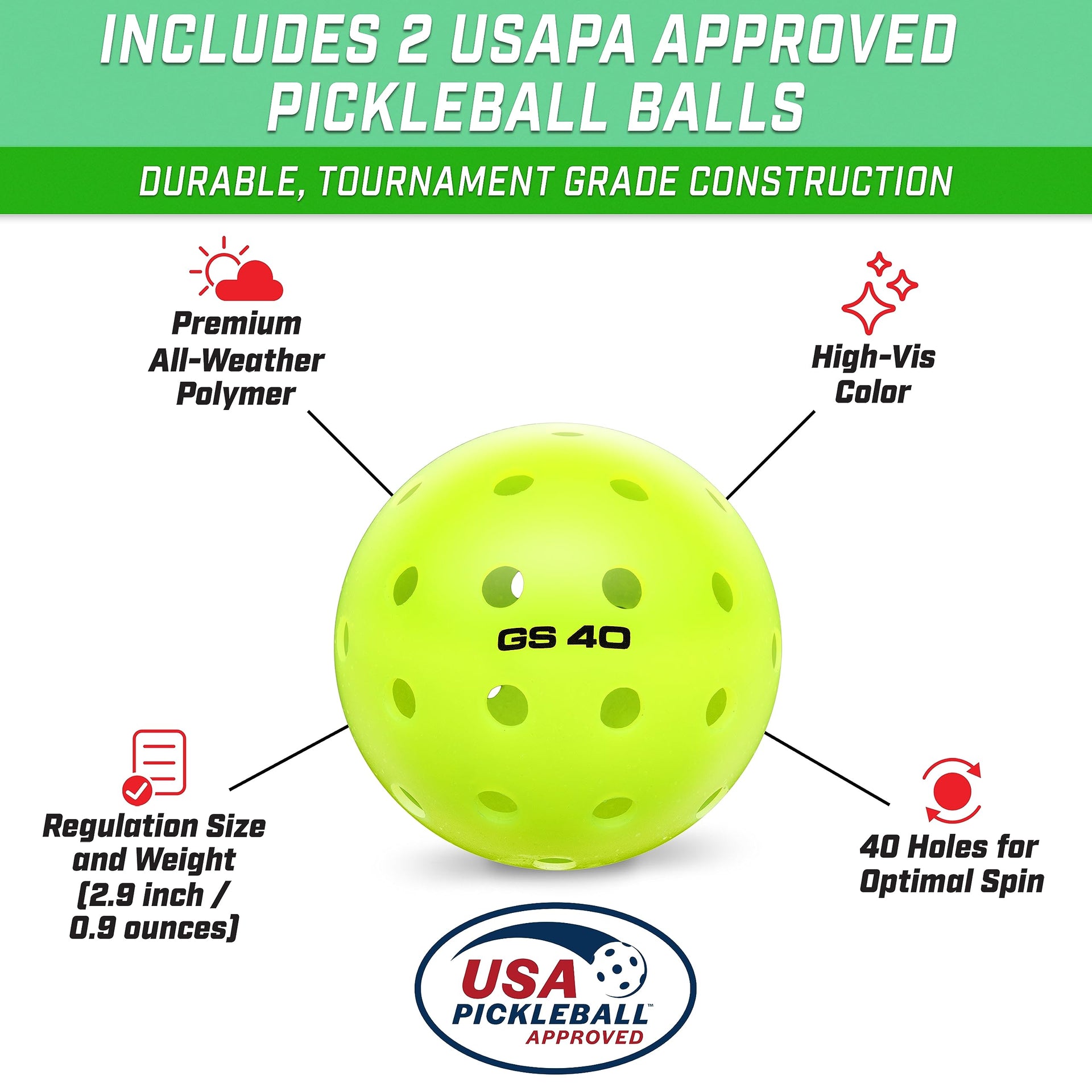 Gosports Gs1 Pickleball Paddles Set Of 2 With 2 Pickleballs - Usapa Approved Fiberglass Pickleball Paddles, Black