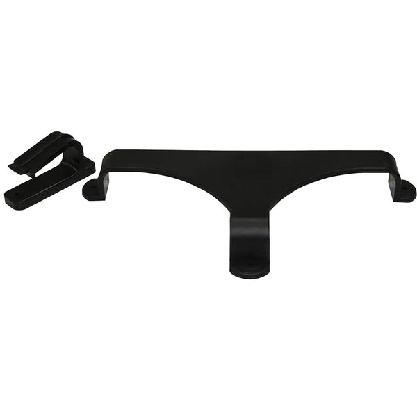 Space saving hardware mounts either in a vertical or horizontal position. Two piece hardware Convenient storage Black finish Easy installation