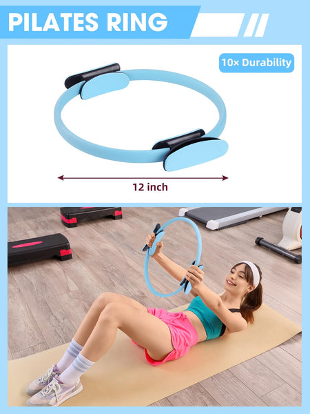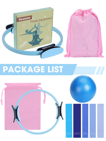 Neuonn Pilates Ring Set for Home Workout, Pilates Essentials Kit for Women, [12 Fitness Circle, Pilates Balls, Resistance Band