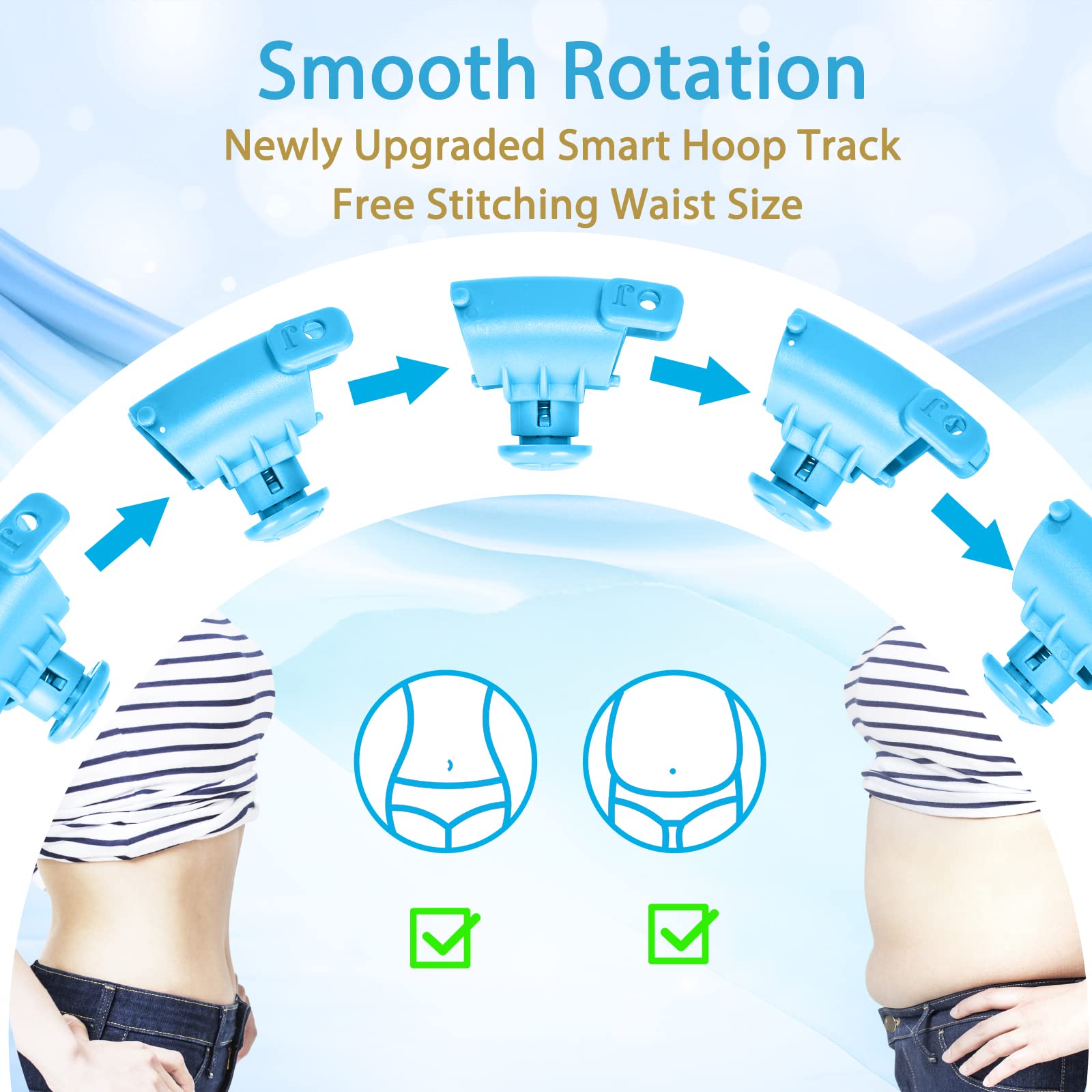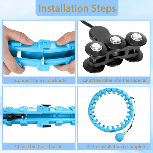 Newly upgraded smart hoop groove track, make the roller rotate smoothly on the hoop trackWont fall, wont get stuck, allowing you to exercise freelyHula circle waist trainer for womens weight lossProduct material: Hula circle links: ABS plasticWeighted ball: NBR rubberSingle package size: 32A31A125 cmProduct weight:175 kgSize: 32 knotsFits any waist size under 60 inchesApplicable people and attention:Suitable for almost all adults and kids sportsWhen exercising, pay attention to the swing range of the weight ball to avoid touching others or the furniture, Ensure to have enough space around you