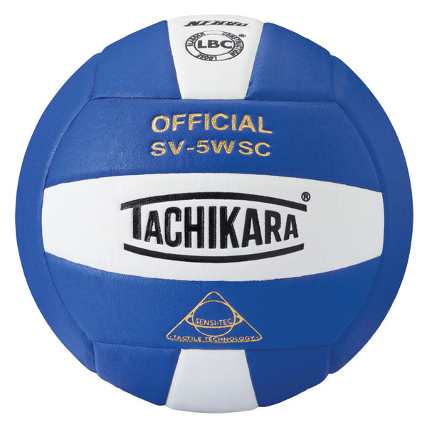 - Q: What colors are available for the Tachikara SV-5WSC Volleyball? A: This volleyball is available in a royal and white color combination. It is also NFHS approved in all colors.