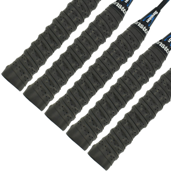 NOTE: A sponge line on the back of each overgrip make a little uneven surface offering a comfortable grip feeling and preventing your hand slipping from the handle easily. Parameters Winding Tips: At the begining and end of wraping stage, please use more strength to wrap it tightly, then at the middle stage, use less strength to wrap. Product parameter: Color: Black, Red, Yellow, Purple, Blue Material: PU Length x Width x Thickness: 44.5 '' x 1 '' x 0.03 '' Weight: 0.3 ounce /10g for each piece