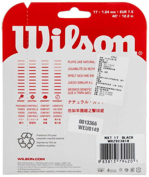 Wilson NXT Multifilament 17 Gauge Tennis Racket String in Black Color (Best String for Power and Comfort) is one of the most widely sold multifilaments ever made. It offers an increase in sweetspot of over 10 percent, and also cuts down on those unwanted vibrations. Perfect strings for the player who covets control and comfort.