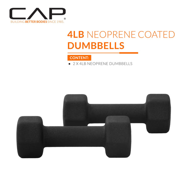 Cap Barbell Neoprene Dumbbell Weights, 4 Lb Pair, Black