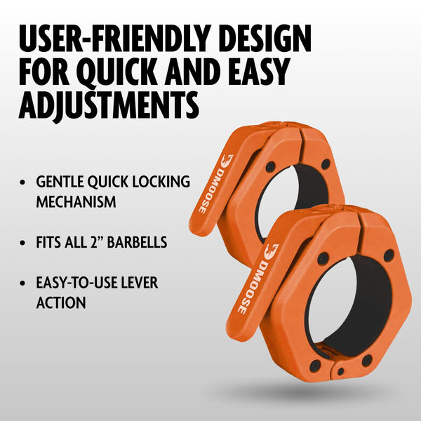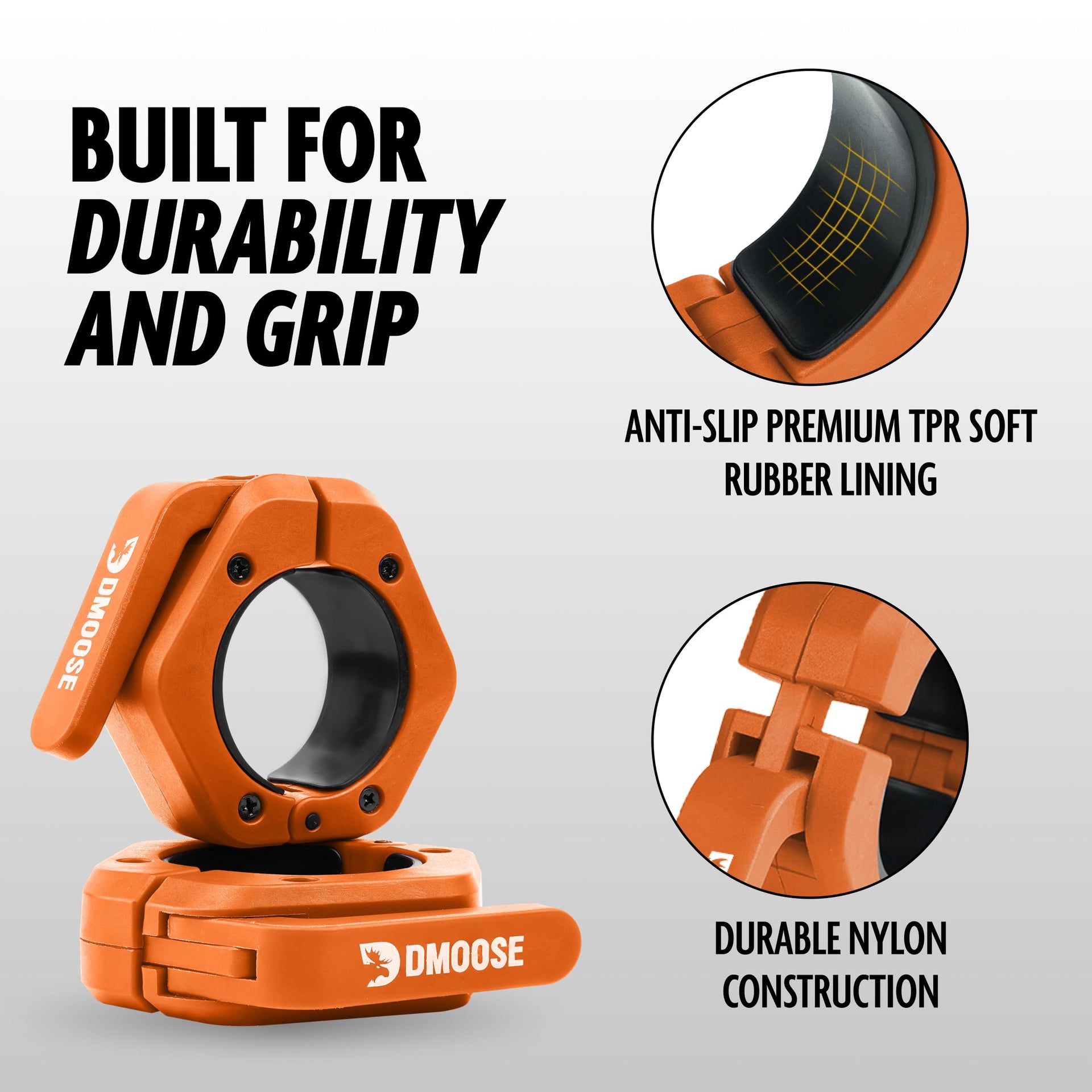Dmoose Barbell Clips (Pair) - Quick Release Olympic Barbell Clamps With Anti Slip Tpr Grip - 2'' Barbell Collars For Secure Weig