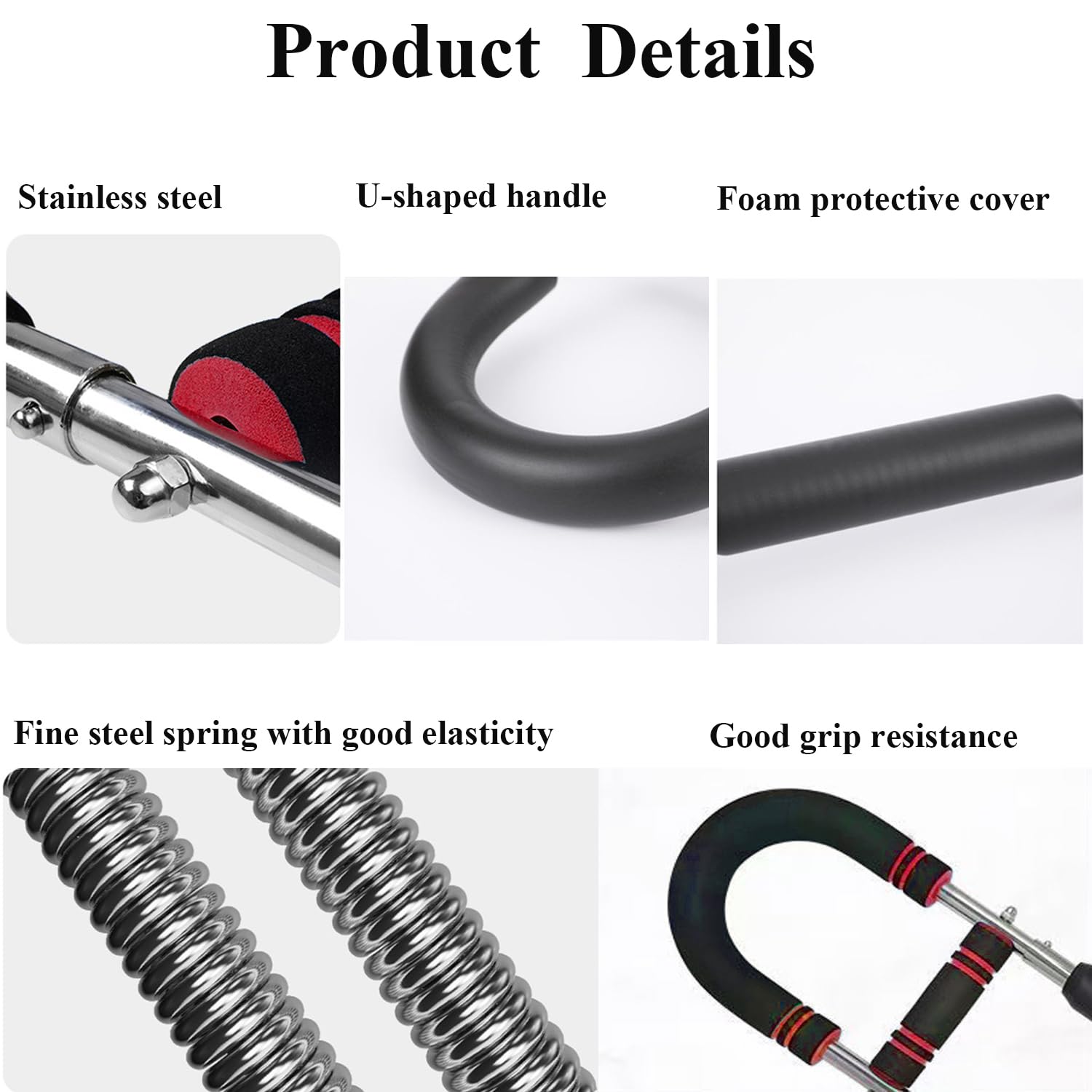 Multi Muscle Group Training: Targeting chest muscles, shoulders, arms (biceps/triceps), forearms, and core muscle groups to strengthen upper limb strength and coordination. Activate small muscle groups that are difficult to train with traditional equipment through movements such as rotation, pushing, and pulling. | Adjustable Resistance: Spring resistance of 40-100lb, starting from lower resistance and adjusting strength according to your fitness level, very suitable for beginners to advanced users. Balancing safety and enhancing fundamental strength. | Portable and Detachable Design: lightweight, easy to assemble/disassemble, suitable for home, gym, or outdoor use. The compact storage space makes it easy to travel. | Three in One Resistance System: high-strength metal spring, strong elasticity, long service life, no jerking sensation in spring resistance, reducing joint impact. Three level resistance adjustment meets different intensity requirements (primary/intermediate/advanced). Leather wrapped design to prevent sports scratches and enhance safety. | Efficiently: 10 minutes of efficient training replaces the 1-hour gym routine. Implement multi device functionality and bid farewell to crowded home environments. Intuitive operation+graphic guide, zero learning cost. Become an innovator in home fitness and fragmented training. Whether it 's muscle building and shaping, functional training, or increasing daily activity, it can meet the needs in a low-cost and highly flexible way.