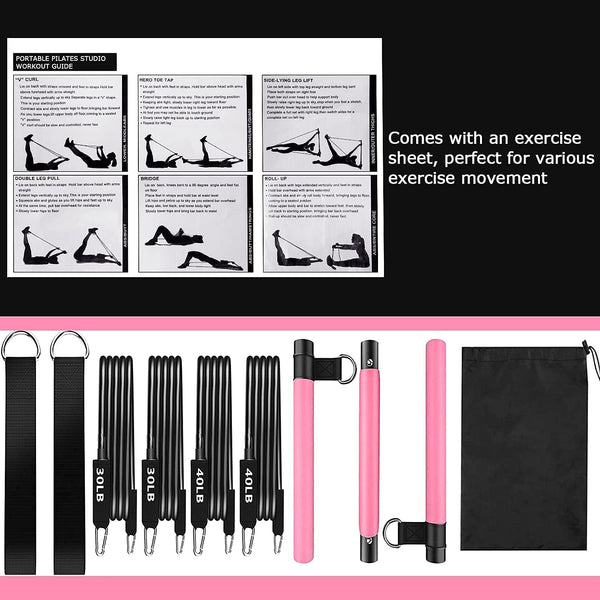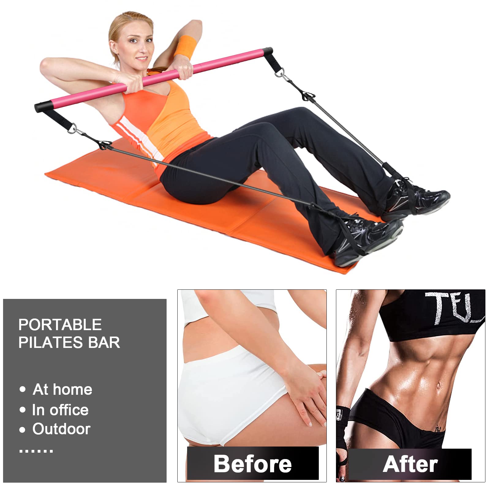 Bbtops Pilates Bar Kit With Resistance Bands(4 X Bands),3-Section Pilates Bar With Stackable Bands Workout Equipment For Legs,Hi