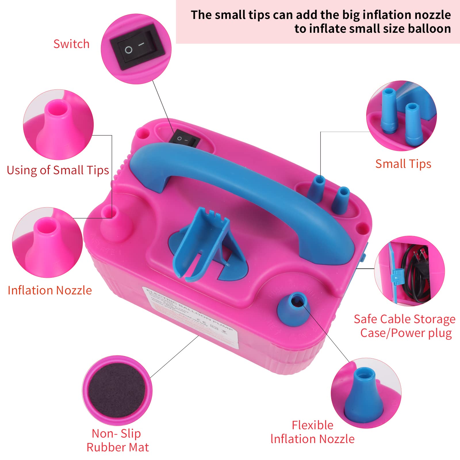 Electric Balloon Pump With Balloon Sizer, Qipump 110V 600W Balloon Blower Inflator Dual Nozzle Air Pump Balloons Inflator For Ba