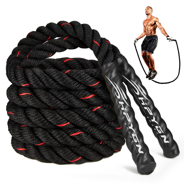 WHY cHOOSE OUR HEAVY WEIgHTED JUMP ROPEQuickly reach fitness goals-The power of exercise rope is 5 times that of ordinary skipping rope, which can effectively exercise your core, shoulder and back muscles, and increase your strength in a short time, Perfect strength training equipment,HPYgN jump rope for men&women and people who need perfect muscles Tired of skipping rope for hours with little benefit Our heavy jump rope is far more effective than an ordinary jump rope for building muscle fast Boost your strength and crush calories with our ultra durable heavy duty jump rope Were sure youll agree that our rope is superior to a speed rope or a bod rope Weighted jumping rope can burn 200 to 300 calories in just 15 minutes More than rowing, jogging, cycling, or swimming can effective help you burn calories & builds strong bones, strengthens the heart and shape perfect musclelineJumping rope improves coordination by requiring several body parts to communicate to complete the movements, thus develops agility, balance and concentrationMany athletes practice workout rope This helps to bend the knees to lower the center of gravity, break the static state, and start the body quickly At the same time, skipping rope can increase the strength of the calf muscles, increase the strength and elasticity of the ligaments of the knee and ankle joints, and help support the body and start quicklyScientific research has proved that skipping rope can prevent high blood pressure, hyperlipidemia, arthritis, diabetes, obesity, insomnia, depression, osteoporosis, muscle atrophy, menopausal syndrome, etcPackage includes: 1*Packaging Bag, 1*92 ft Heavy Jump Rope