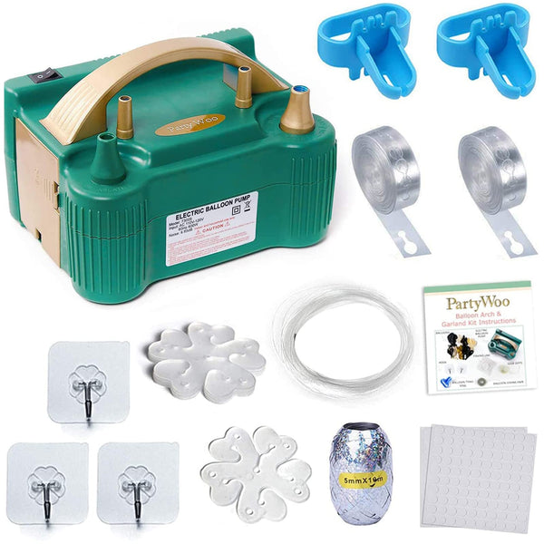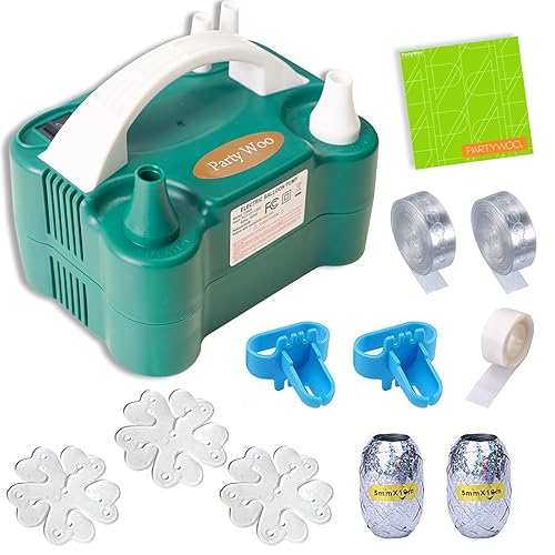 Size: 83*61*59 inch Input voltage: 110V-120V Pressure: 13000pa Power: 600W Packaging includes: Balloon pump*1 Balloon garland kit*1 (5m balloon tape*2 roll glue dots*2, 100 pcs sheets balloon knot tying tool*2 30m fishing line*1 balloon clips*5 10m silver ribbons*1 wall hooks*3 balloon garland instructions*1) Operating Steps (1) Pinch two sides of mouth of balloon with your fingers (2) cover inflation port with balloon (3) Inflate balloon by pushing inflation port down (4) Release inflation port when balloon size is suitable Note This electric balloon pump is only suitable for ordinary latex balloons and aluminum balloon, not suitable for long balloons (magic balloons) This balloon pump fills balloons with AIR - NOT HELIUM or HYDROgEN Avoid electric balloon inflator excessive heat, do not use the electric balloon pump for a long time Please DO NOT overfill the balloons QA Will this work for 160 and 260s for balloon twisting This balloon pump is not suitable for twisting balloons Please use a hand pump to inflate twisting balloons Do the balloons float in the air with just the air or do they need helium They do not, you need a helium tank for the balloons to float in the air Does this work in US plugs Yes, it plugs into US sockets