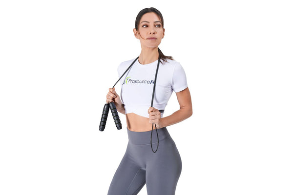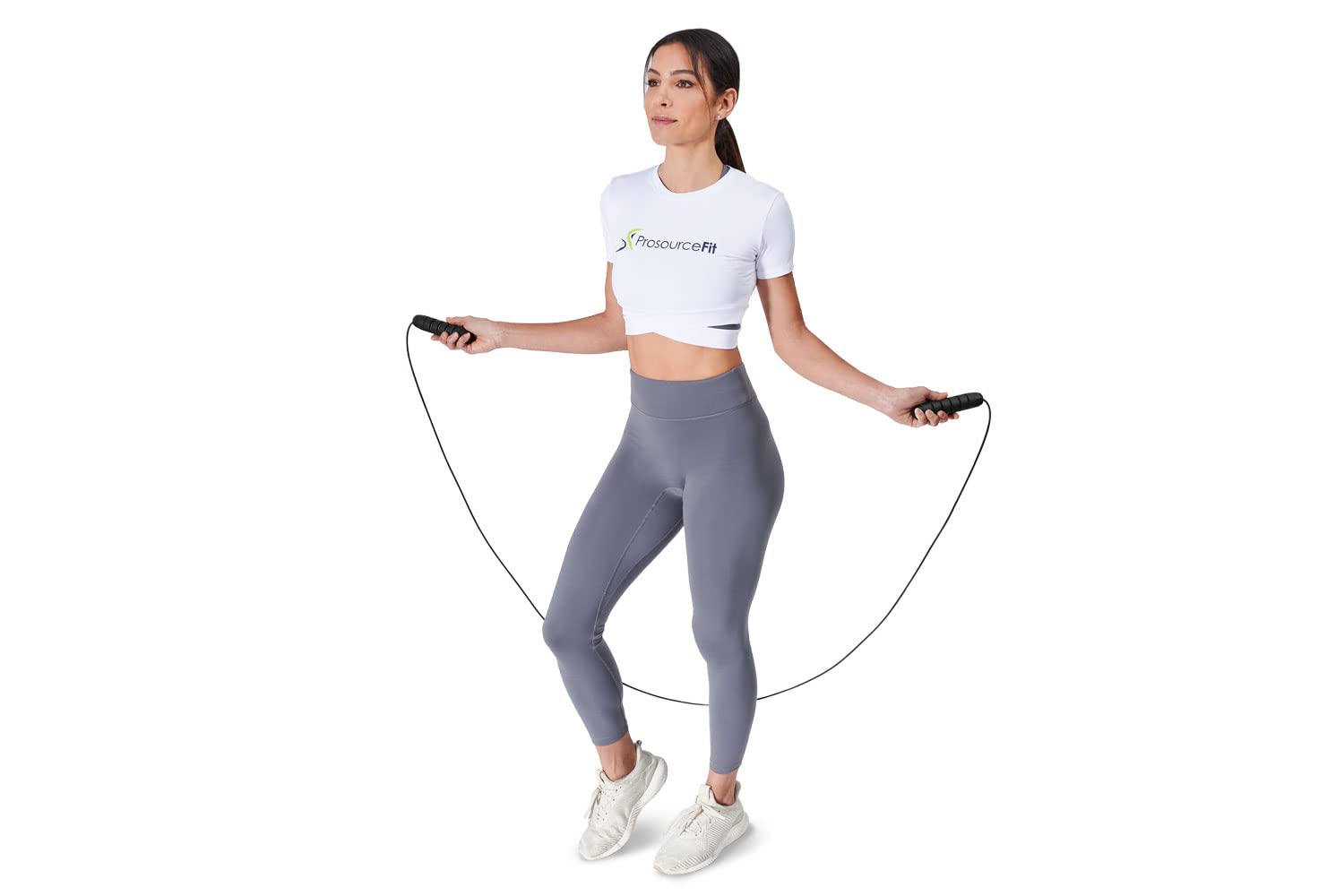 The ProsourceFit Speed Jump Rope with Foam Handles is essential for every fitness lover! The versatile design allows beginners to learn the basics and experts to challenge their speed. The 8-foot rope is fully adjustable at each handle to meet your desired length. The steel wire cable is coated in durable PVC protect against cracks and scuffs. Find comfort during workouts with the foam-covered handles. Each handle is covered with a layer of foam that provides soft support and prevents slips from sweat. The jump rope easily folds up and fits in any gym bag for easy storage!