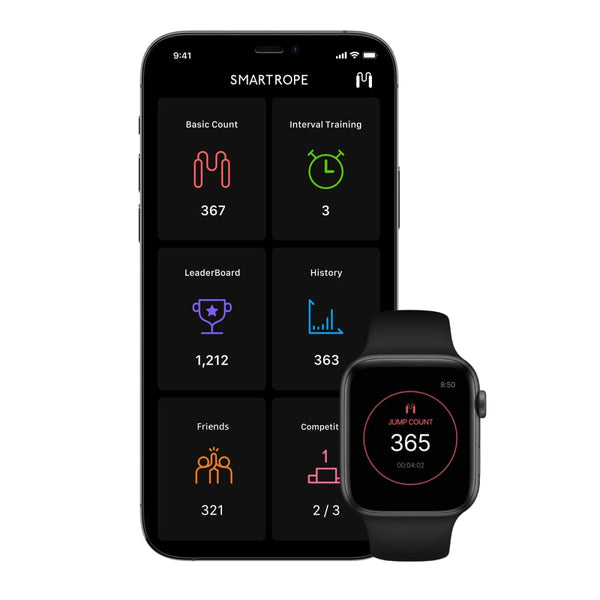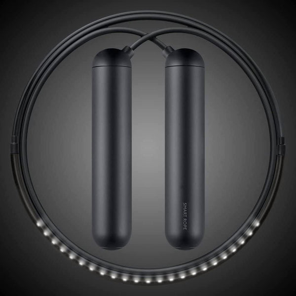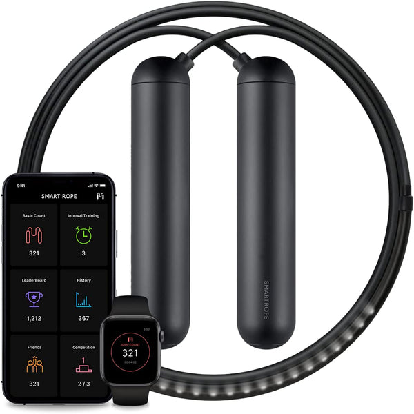 Smart Rope is an LED-embedded jump rope that displays your jump count in mid-air and communicates with your smartphone to track your fitness data. Smart Rope tracks your jump count and displays it in front of you as you jump, kind of like a hologram. Sync it with the free mobile app, Smart Gym (iOS, Android, Apple Watch), to track your jumps, calories burned, and workout times. Smart Gym will also recommend interval training sessions for you based on your skill level and keeps you motivated by unlocking awards and allowing you to compete with your friends via Facebook.