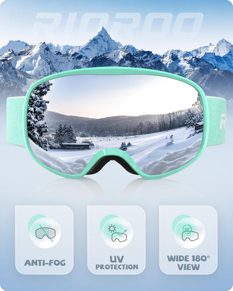 OTG Design: The Ski Goggles for men features an OTG design with the wide panoramic lens, provide enough space, that lets you wear your glasses under the goggles, see the path clearly and enjoy the view of the snowy mountains while skiing | Anti-Fog Lens & Excellent Optical Clarity: The lens of the snow goggles adopts the anti-fog coating, which can prevent fogging when wearing the goggles, and you can start skiing immediately. In addition, the surface is HD high-definition optical lens, which enhances snow vision and makes it easier to distinguish snow pits and bulges | Full UV Protection: The ski goggles for women have 100% UV protective lenses to adapt to different weather and avoid UV damage to your eyes, Besides, the high quality lens provides increased visibility in skiing or snowboarding | Wide Vision: The snowboarding goggles use a thinner matte frame,which makes the snow goggles wider. The 180