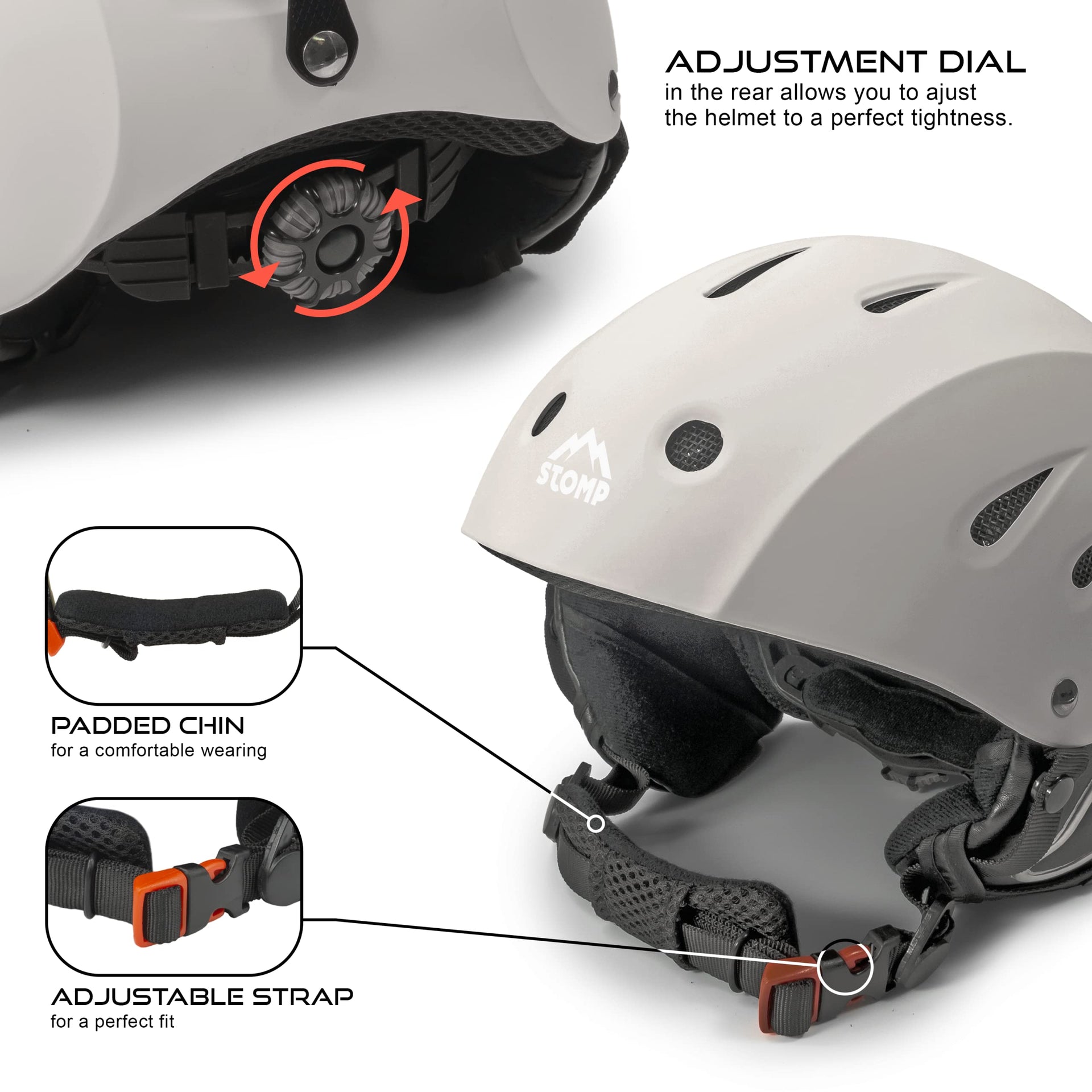 Stomp Ski & Snowboarding Snow Sports Helmet With Build-In Pocket In Ear Pads For Wireless Drop-In Headphone (Matte Grey, X-Large