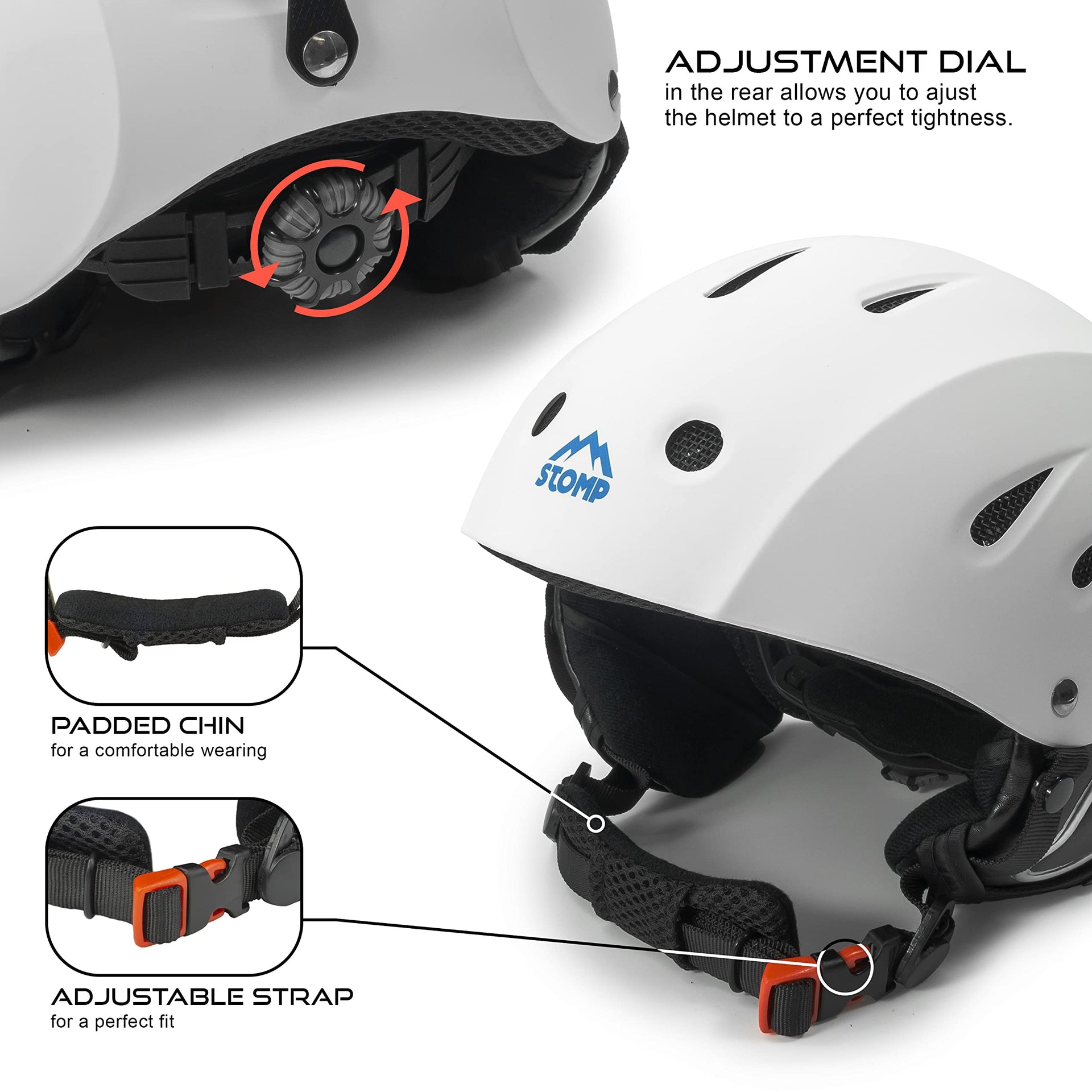 Stomp Ski & Snowboarding Snow Sports Helmet With Build-In Pocket In Ear Pads For Wireless Drop-In Headphone (Matte White, X-Larg