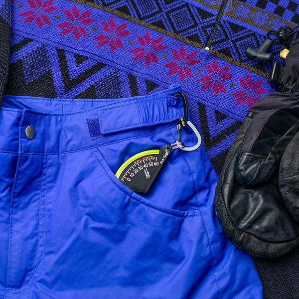 Dual use: (1) Approximate avalanche danger and (2) slope of terrain for hikersskiers Demarked with 3 levels of approximate avalanche danger (red, orange, yellow) Includes 1 mm, 2 mm and 3 mm grids for examining snow crystals grooved base aligns with ski pole or trekking pole for sighting can also be permanently affixed to skitrekking pole with zip-ties (not included) compact size: Fits easily in pocket or clips to parka, pack or vest Numerals and markings are engraved and paint-filled for maximum readability and durability Temperature range: -40 degrees F to +125 degrees F Instructions included IMPORTANT NOTE: Avalanches can and do occur over a wide range of slope angles, and are influenced by several factors other than angular slope Do not travel in avalanche areas without prior avalanche safety training, and always be alert to avalanche danger and travel accordingly
