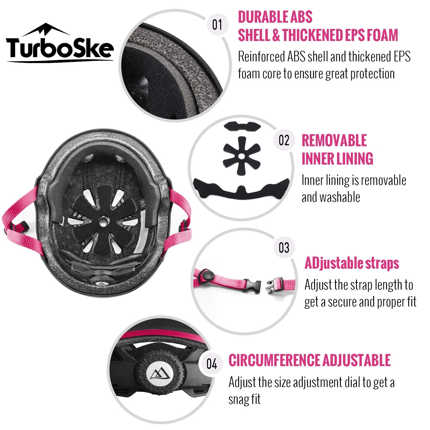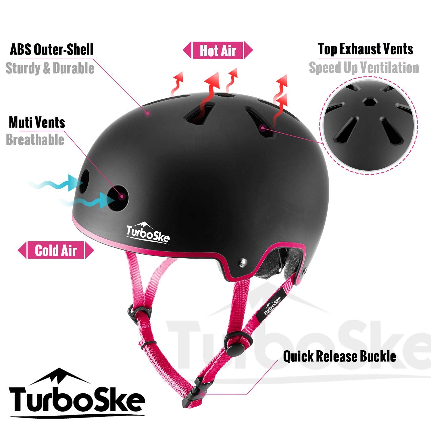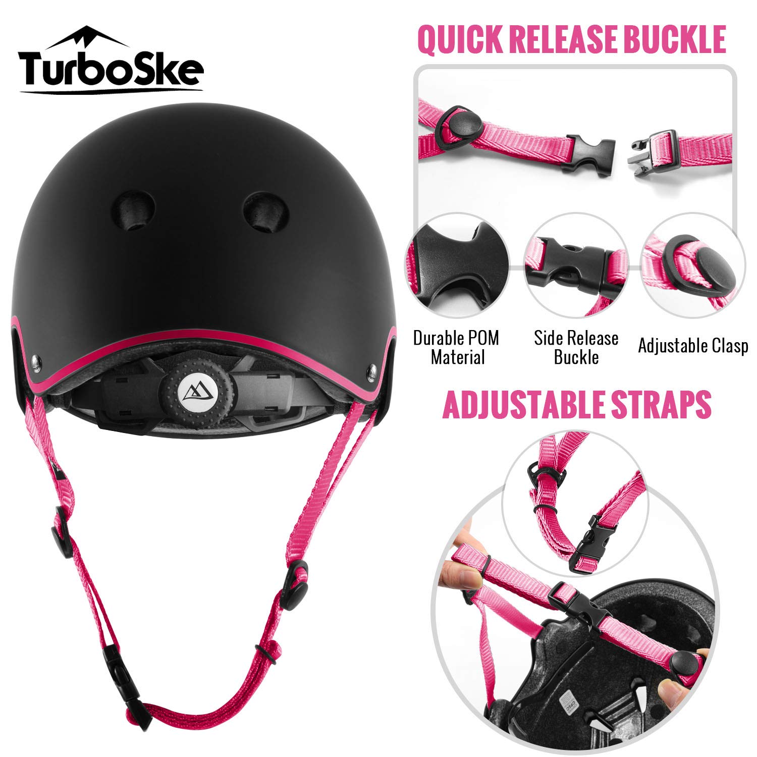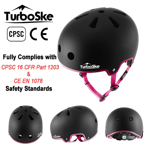 Turboske Skateboard Helmet, Bmx Helmet, Multi-Sport Helmet, Bike Helmet For Kids, Youth, Men, Women (Black&Pink, L/Xl (22.8''-24